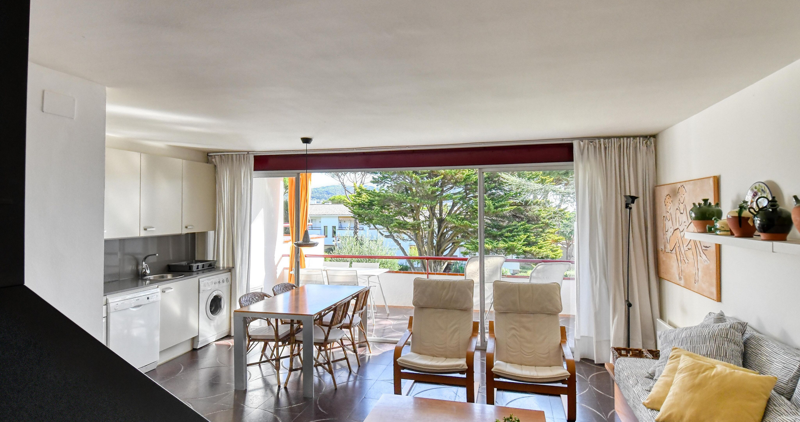 Nur 500 m vom Strand, Restaurants und Supermärkten entfernt, in einer ruhigen und familienfreundlichen Gegend. Es verfügt über eine Terrasse, einen Gemeinschaftspool, einen Garten, einen Kinderspielplatz und einen Tennisplatz.