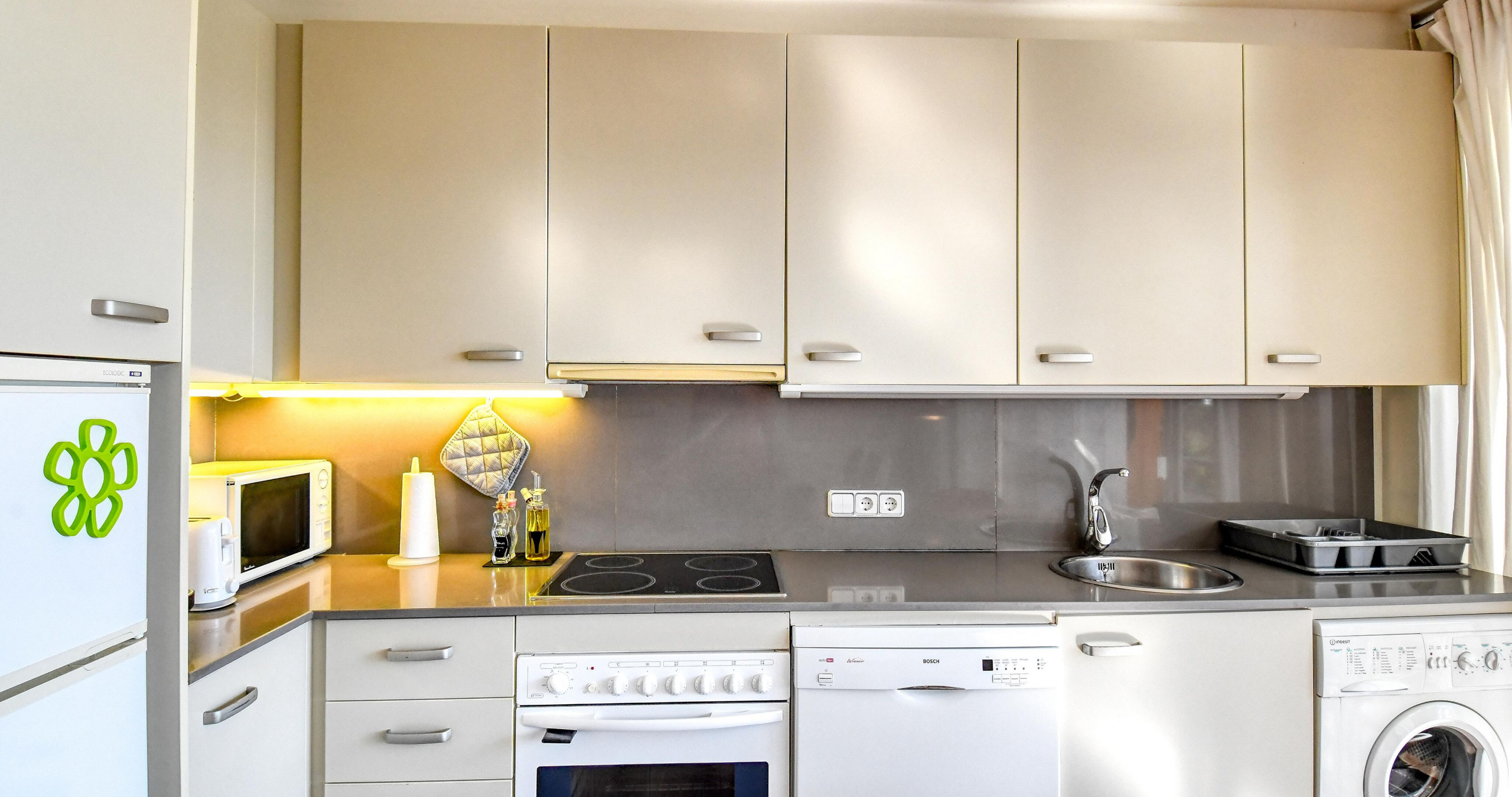 Ausgestattet mit WiFi, Kamin, Waschmaschine, überdachtem Parkplatz und vollständiger Küche mit Geschirrspüler und Kaffeemaschine.