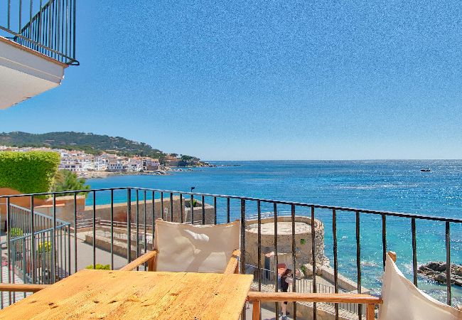 Die Ferienwohnung in Calella de Palafrugell hat eine Kapazität für 4 Person(en). Unterkunft verfügt über 50 m² liegt direkt am Strand und verfügt über eine tolle Aussicht auf den Strand / das Meer. Die Unterkunft befindet sich 20 m vom zum Sandstrand "20m" entfernt, 20 m vom Kiesstrand "20m", 150 m vom Supermarkt "150m".Die Unterkunft verfügt über ein Bügeleisen/-brett, ein Internetanschluss (WLAN), eine Wärmepumpe, eine überdachter Parkplatz in Grundstücksnähe, 1 Fernseher.Die Separate Küche mit elektrisches Kochfeld ist ausgestattet in einen Kühlschrank, Geschirr/Besteck, Kochutensilien und eine Kaffeemaschine.