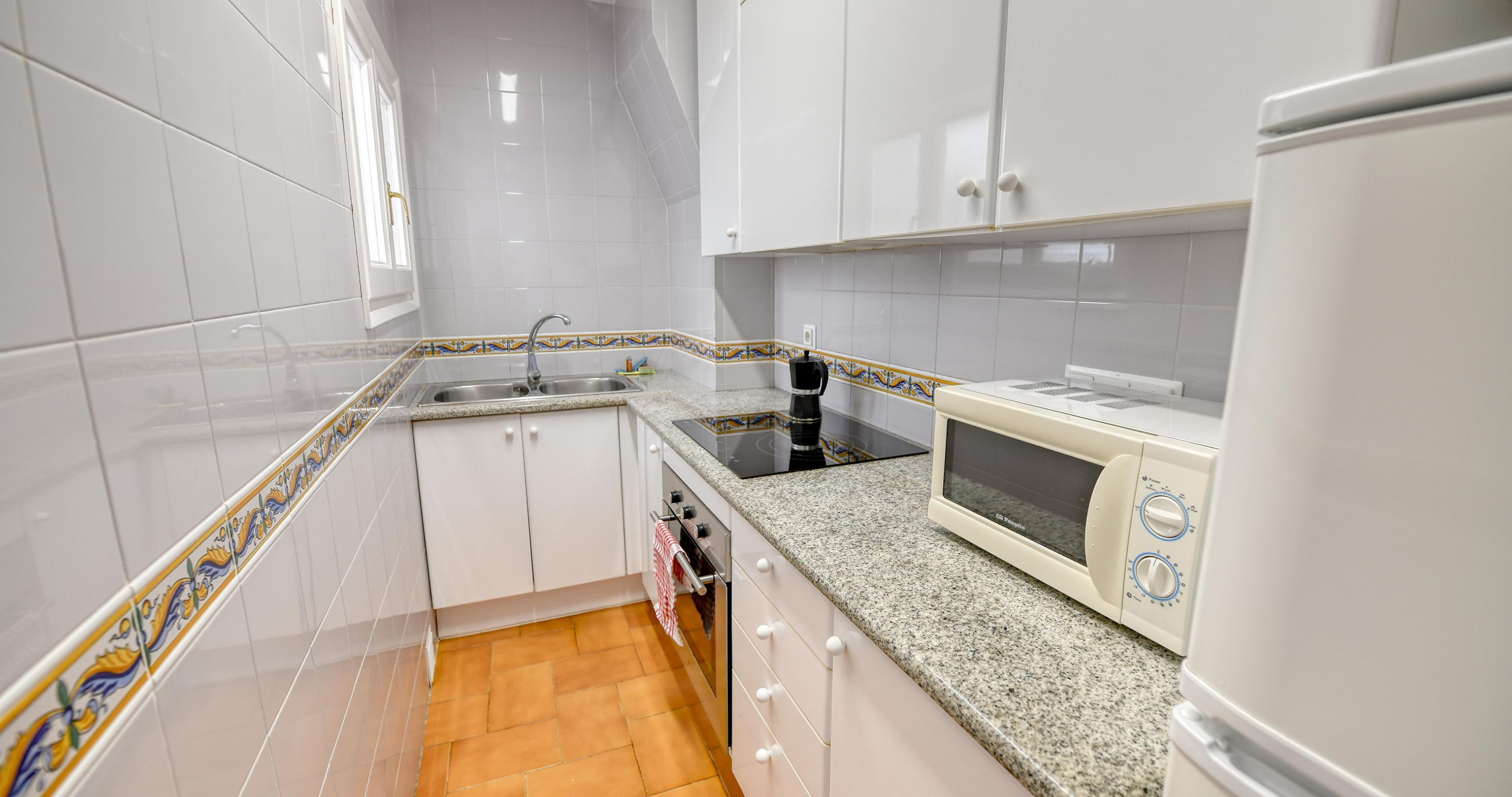 Die separate Küche ist mit Kochfeld, Kühlschrank, Gefrierschrank, Ofen, Mikrowelle, Kaffeemaschine, Toaster, Wasserkocher und allem notwendigen Zubehör ausgestattet. Es gibt auch eine Waschmaschine und ein Bügeleisen.