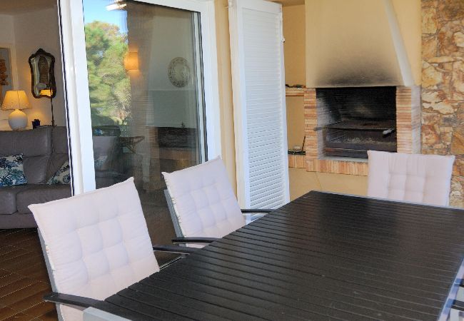 Die Ferienwohnung in Calella de Palafrugell hat eine Kapazität für 7 Person(en). Die Unterkunft befindet sich 12 m vom Golfplatz "12m" entfernt, 55 m vom Flughafen "55m", 400 m vom zum Sandstrand "400m", 400 m vom Kiesstrand "400m", 2 km vom Supermarkt "1500m".Die Unterkunft verfügt über eine Waschmaschine, einen Kamin, ein Bügeleisen/-brett, ein Tennisplatz, einen Gemeinschaftspool, einen Parkplatz im Freien in Grundstücksnähe, 1 Fernseher.Die Separate Küche mit elektrisches Kochfeld ist ausgestattet in einen Kühlschrank, ein Backofen, Geschirr/Besteck, Kochutensilien und eine Kaffeemaschine.