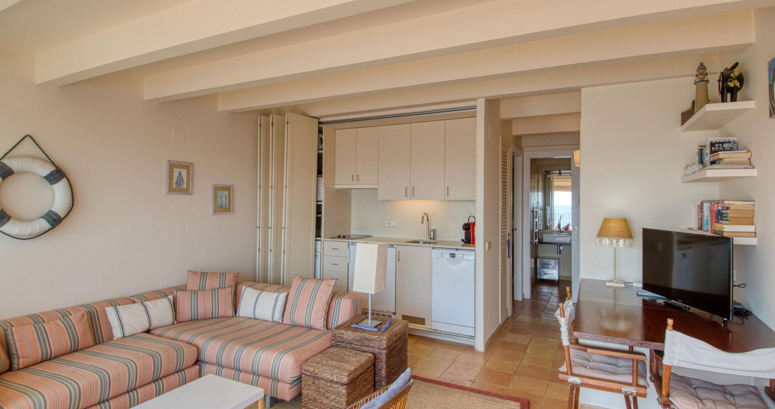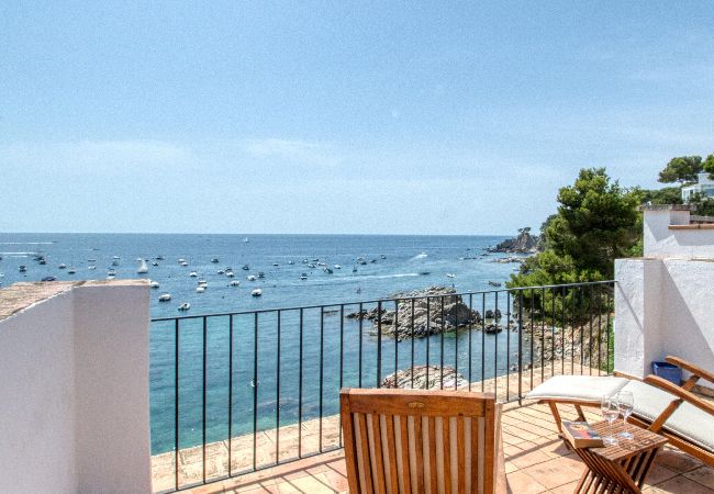 Die Penthouse in Calella de Palafrugell hat eine Kapazität für 2 Person(en). Unterkunft verfügt über 40 m² liegt direkt am Strand und verfügt über eine tolle Aussicht auf den Strand / das Meer. Die Unterkunft befindet sich 20 m vom zum Sandstrand "20m" entfernt, 20 m vom Kiesstrand "20m", 150 m vom Supermarkt "150m". Die Unterkunft verfügt über ein Bügeleisen/-brett, ein Internetanschluss (WLAN), eine Wärmepumpe, eine überdachter Parkplatz in Grundstücksnähe, 1 Fernseher. Die Separate Küche mit elektrisches Kochfeld ist ausgestattet in einen Kühlschrank, Geschirr/Besteck, Kochutensilien und eine Kaffeemaschine.