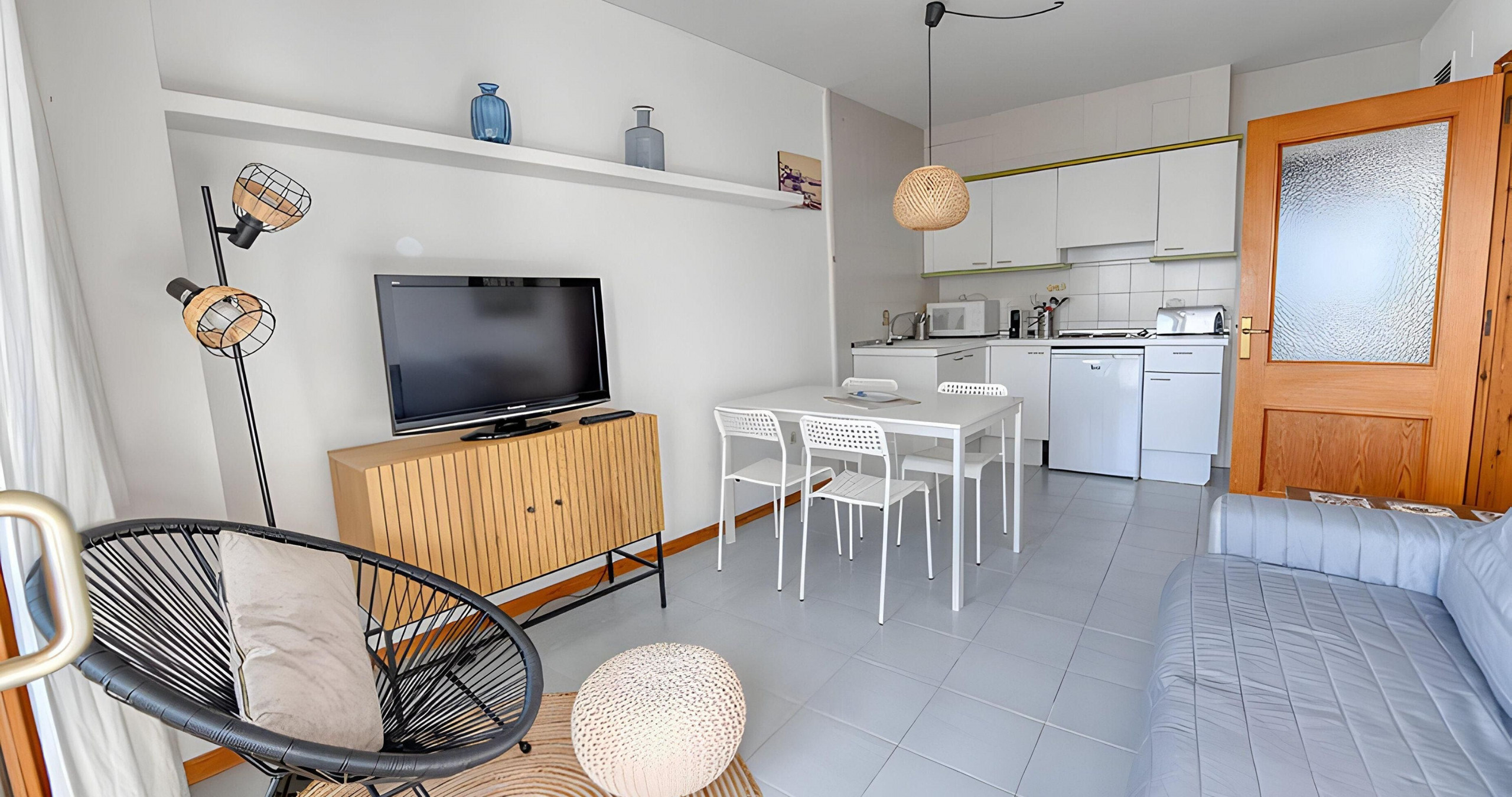 The apartment in Calella de Palafrugell has capacity for 3 people. The apartment is 39 m². It has views of waterfront. The property is located 10 m from 10m sand beach, 10 m from 10m rock beach. The accommodation is equipped with the following items: 1 TV. In the electric independent kitchen, refrigerator, dishes/cutlery and kitchen utensils are provided.