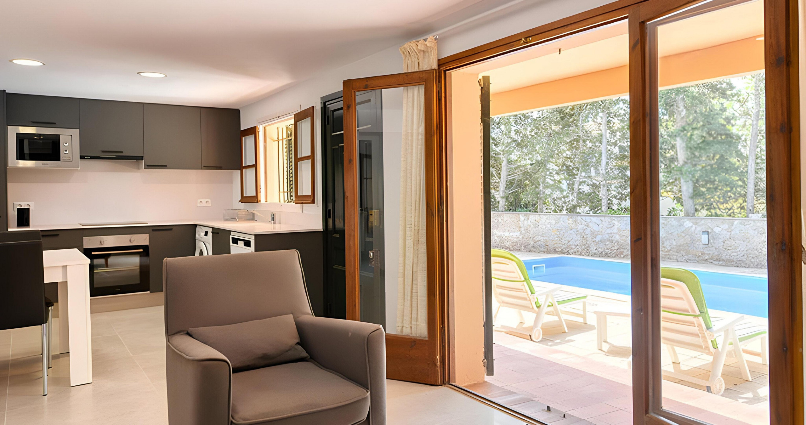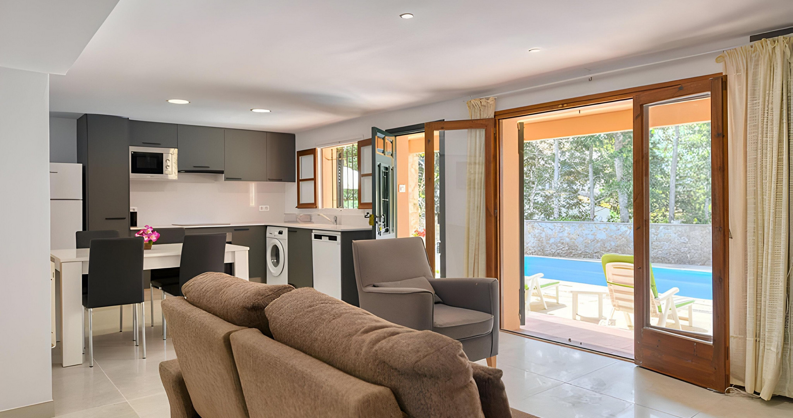 The apartment in Calella de Palafrugell has 2 bedrooms and has capacity for 4 people. The apartment is comfortable, has an exterior, and is 52 m². It has views of the garden and the swimming pool. The property is located 600 m from the sand beach, 600 m from the rock beach, 600 m from the supermarket, 6 km from the bus station, 13 km from the hospital, 14 km from the golf course, 21 km from the water park, 50 km from the airport, 50 km from the train station, 140 km from the international airport. The house is situated in a quiet neighborhood close to a shopping area and restaurants. The accommodation is equipped with the following items: garden, garden furniture, washing machine, internet (Wi-Fi), communal swimming pool, open-air parking the same building, 1 TV. In the electric open plan kitchen, refrigerator, microwave, oven, freezer, dishwasher, dishes/cutlery, kitchen utensils and toaster are provided.