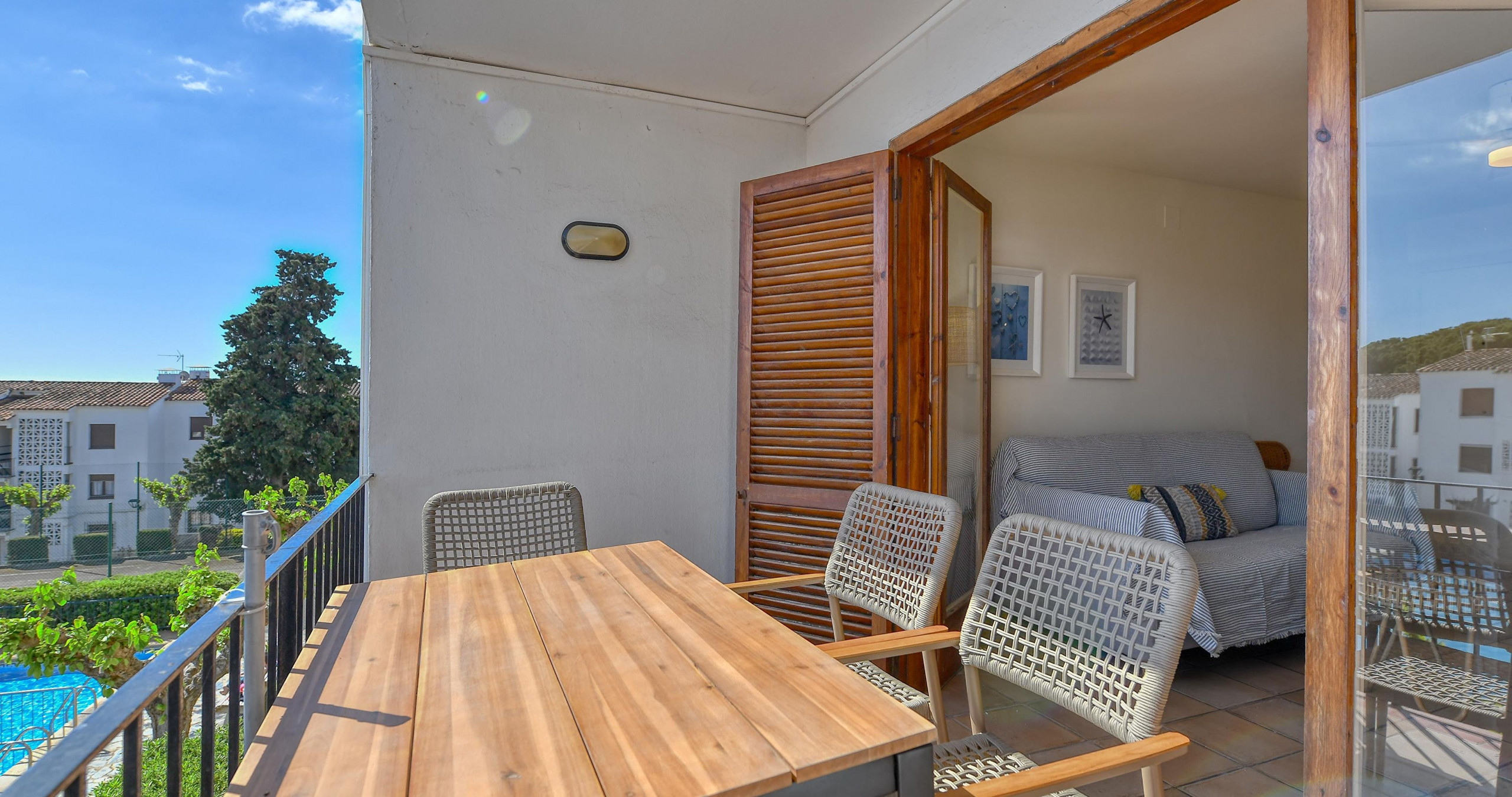 The apartment in Calella de Palafrugell has 2 bedrooms and has capacity for 4 people. The apartment is 55 m². It has views of the garden and the swimming pool. The property is located 150 m from the supermarket, 6 km from the bus station, 13 km from the hospital, 14 km from the golf course, 21 km from the water park, 50 km from the airport, 50 km from the train station, 150 km from the international airport.The accommodation is equipped with the following items: washing machine, iron, internet (Wi-Fi), communal swimming pool, 1 TV.In the hotplate of glass ceramics independent kitchen, refrigerator, microwave, oven, freezer, dishes/cutlery, kitchen utensils and coffee machine are provided.