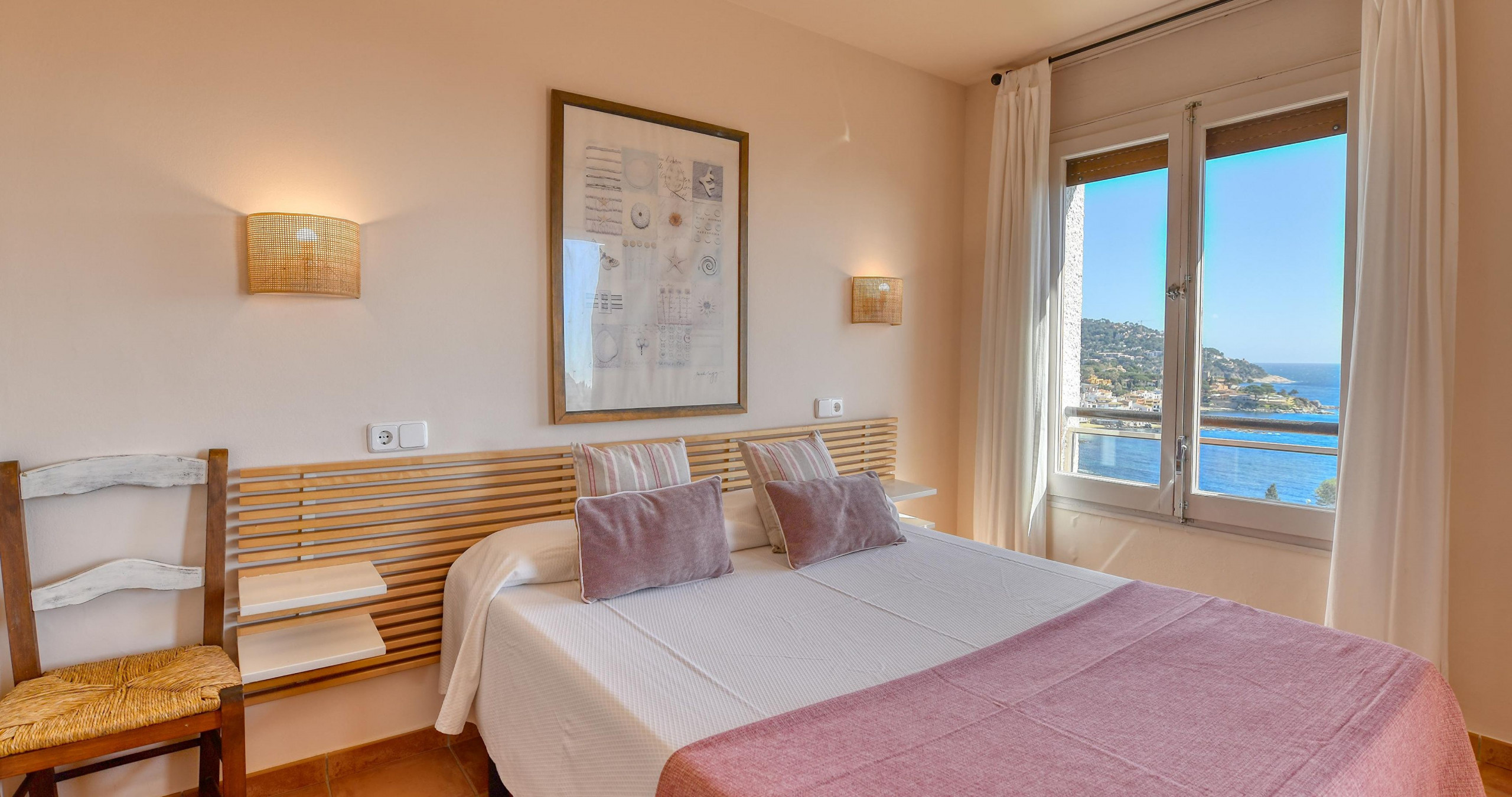 The apartment in Calella de Palafrugell has 2 bedrooms and has capacity for 6 people. The apartment is 70 m². It has views of waterfront. The property is located 250 m from 250m supermarket, 6 km from 6km bus station, 12 km from 12km golf course, 21 km from 21km water park, 50 km from 50km airport, 140 km from 140km international airport. The accommodation is equipped with the following items: terrace, washing machine, fireplace, iron, internet (Wi-Fi), heat pump, air conditioning in the living room, communal swimming pool, open-air parking near the building, 1 TV. In the electric independent kitchen, refrigerator, microwave, oven, dishwasher, dishes/cutlery, kitchen utensils, coffee machine and toaster are provided.