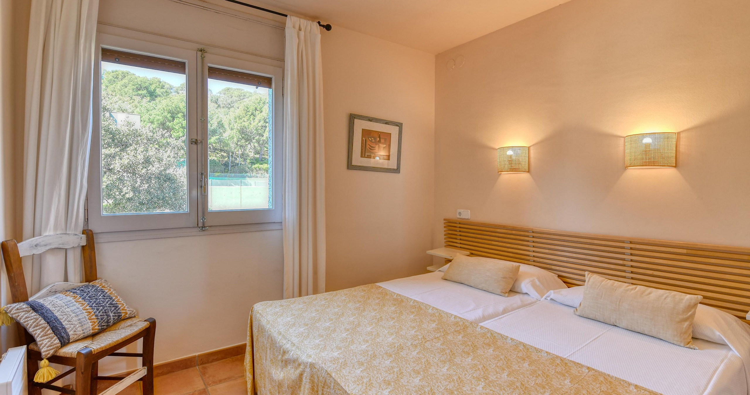 The apartment in Calella de Palafrugell has 2 bedrooms and has capacity for 6 people. The apartment is 70 m². It has views of waterfront. The property is located 250 m from 250m supermarket, 6 km from 6km bus station, 12 km from 12km golf course, 21 km from 21km water park, 50 km from 50km airport, 140 km from 140km international airport.The accommodation is equipped with the following items: terrace, washing machine, fireplace, iron, internet (Wi-Fi), heat pump, air conditioning in the living room, communal swimming pool, open-air parking near the building, 1 TV.In the electric independent kitchen, refrigerator, microwave, oven, dishwasher, dishes/cutlery, kitchen utensils, coffee machine and toaster are provided.