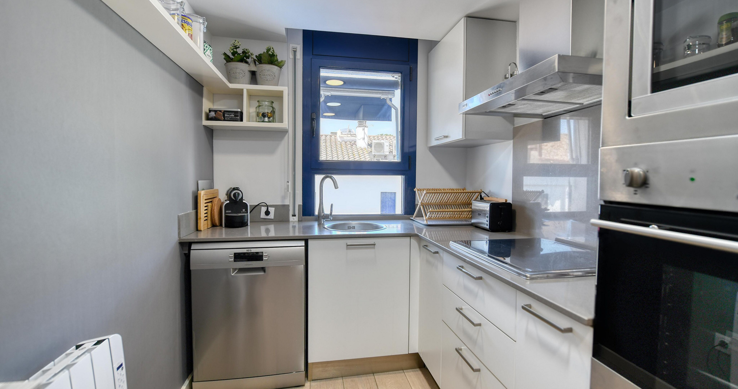 The penthouse in Calella de Palafrugell has capacity for 5 people. The penthouse is 63 m². It has views of waterfront. The property is located 18 m from 18m golf course, 48 m from 48m airport, 200 m from 200m supermarket, 250 m from 250m sand beach, 250 m from 250m rock beach. The accommodation is equipped with the following items: washing machine, heat pump, air-conditioned, communal swimming pool, covered parking near the building, 1 TV. In the electric independent kitchen, refrigerator, dishes/cutlery and kitchen utensils are provided.