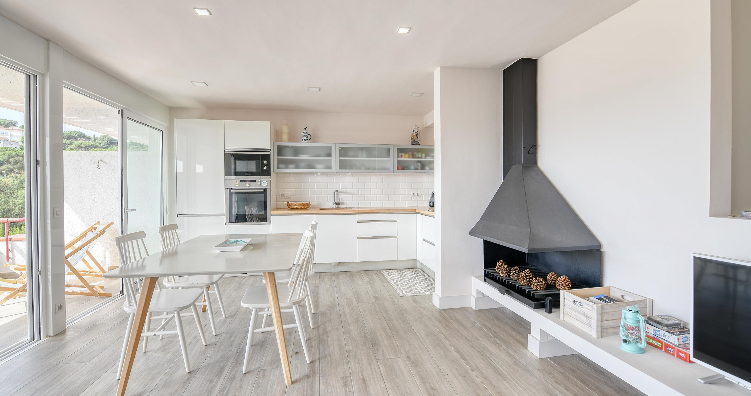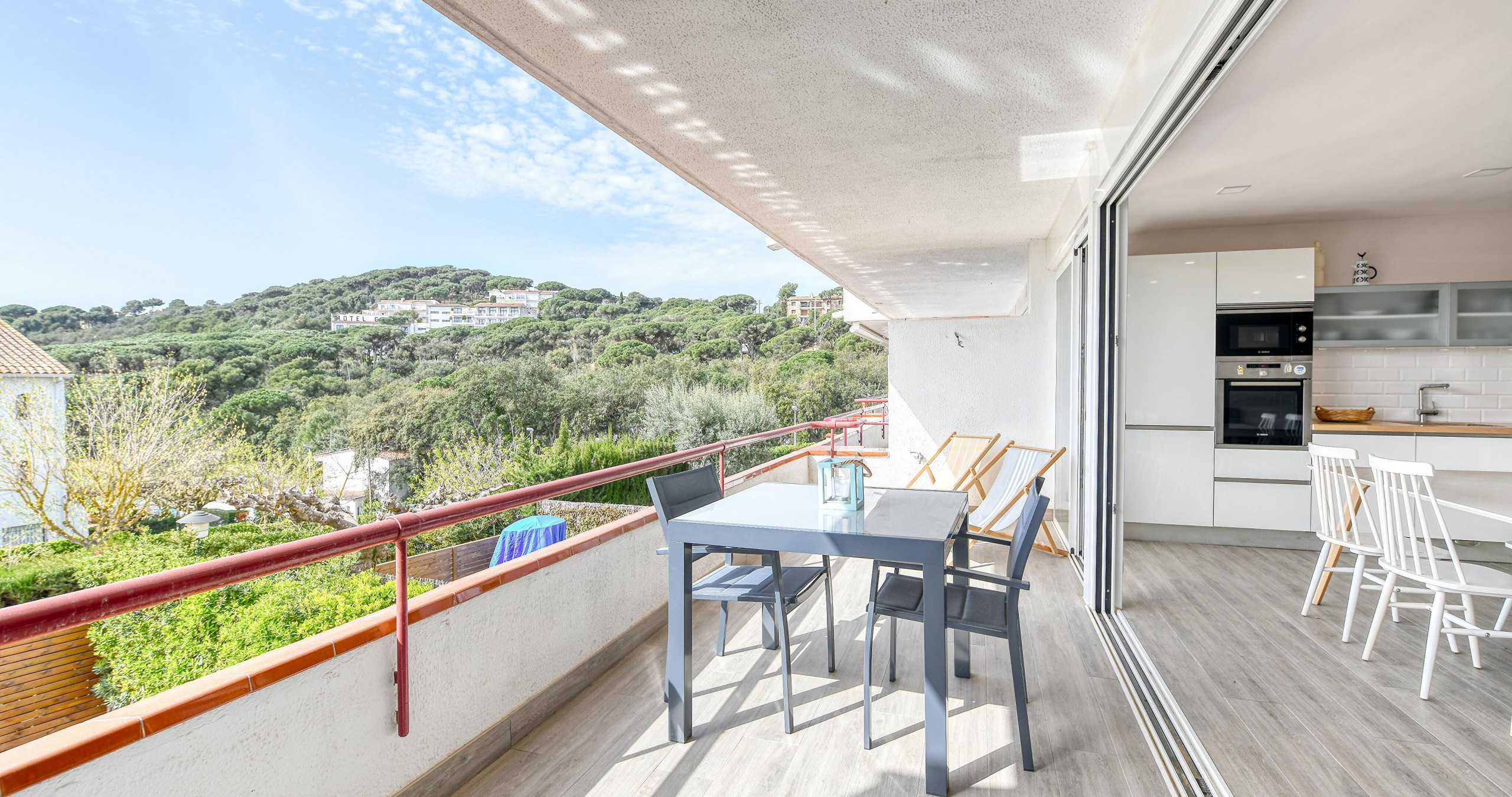 El apartamento en Calella de Palafrugell posee capacidad para 6 personas. Se encuentra a 18 m del campo de Golf "18m", 45 m del aeropuerto "45m", 250 m del supermercado "250m", 300 m de la playa de arena "300m", 300 m de la playa de roca "300m". Dispone de lavadora, chimenea, acceso internet (wifi), zona infantil, pista de tenis, piscina comunitaria, 1 Televisor. La cocina independiente, eléctrica, está equipada con nevera, horno, lavavajillas, vajilla/cubertería, utensilios/cocina y cafetera.
