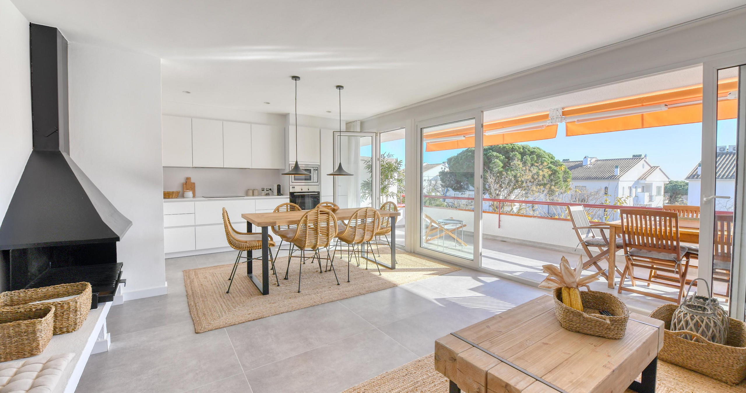 El apartamento en Calella de Palafrugell posee capacidad para 6 personas. Alojamiento de 95 m². Se encuentra a 18 m del campo de Golf "18m", 45 m del aeropuerto "45m", 250 m del supermercado "250m", 300 m de la playa de arena "300m", 300 m de la playa de roca "300m". Dispone de chimenea, plancha, acceso internet (wifi), zona infantil, pista de tenis, piscina comunitaria, parking cubierto en edificio cercano, 1 Televisor. La cocina independiente, eléctrica, está equipada con nevera, horno, vajilla/cubertería, utensilios/cocina, cafetera y tostadora.