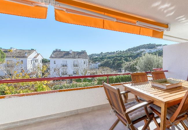 El apartamento en Calella de Palafrugell posee capacidad para 6 personas. Alojamiento de 95 m². Se encuentra a 18 m del campo de Golf "18m", 45 m del aeropuerto "45m", 250 m del supermercado "250m", 300 m de la playa de arena "300m", 300 m de la playa de roca "300m".Dispone de chimenea, plancha, acceso internet (wifi), zona infantil, pista de tenis, piscina comunitaria, parking cubierto en edificio cercano, 1 Televisor.La cocina independiente, eléctrica, está equipada con nevera, horno, vajilla/cubertería, utensilios/cocina, cafetera y tostadora.
