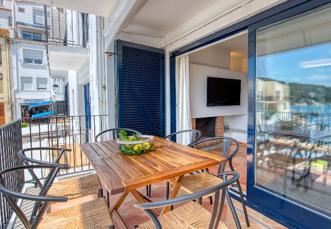 El apartamento en Calella de Palafrugell posee capacidad para 6 personas. Alojamiento de 150 m², situado en primera línea de playa, con vistas al mar. Se encuentra a 5 m de la playa de arena "5m", 5 m de la playa de roca "5m", 12 m del campo de Golf "12m", 20 m del supermercado "20m", 50 m del aeropuerto "50m".Dispone de chimenea, plancha, acceso internet (wifi), calefacción bomba de calor, aire acondicionado, parking cubierto en edificio cercano, 1 Televisor.La cocina independiente, eléctrica, está equipada con nevera, horno, vajilla/cubertería, utensilios/cocina, cafetera y tostadora.
