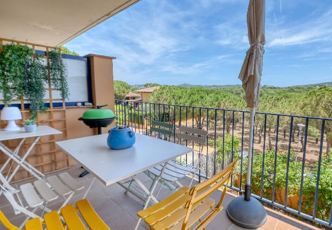 El apartamento en Calella de Palafrugell posee capacidad para 4 personas. Alojamiento de 77 m² de recién construcción. Dispone de ascensor, lavadora, plancha, calefacción bomba de calor, piscina comunitaria, parking cubierto en edificio cercano, 1 Televisor.La cocina independiente, de vitrocerámica, está equipada con nevera, microondas, horno, vajilla/cubertería, utensilios/cocina y cafetera.