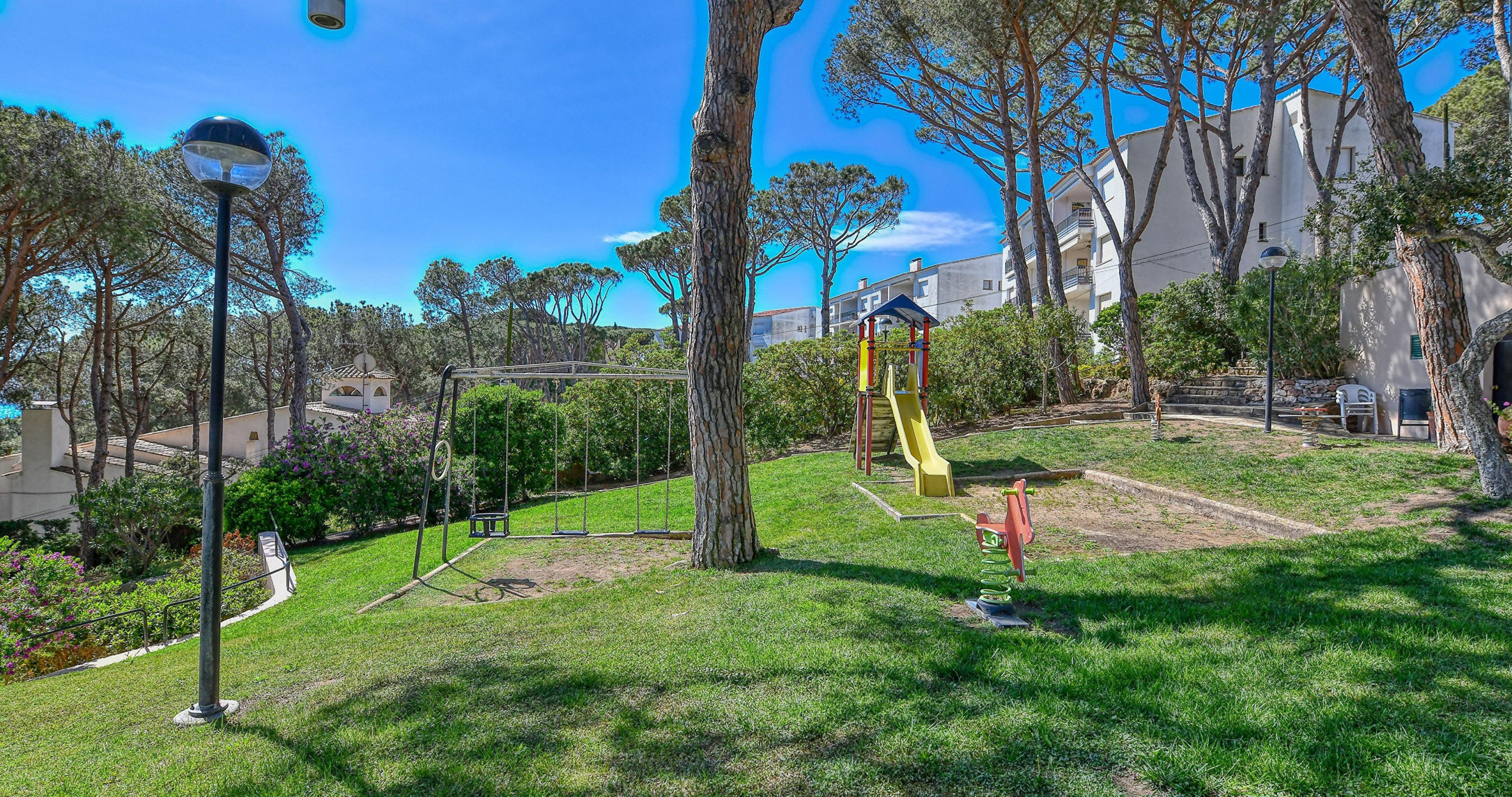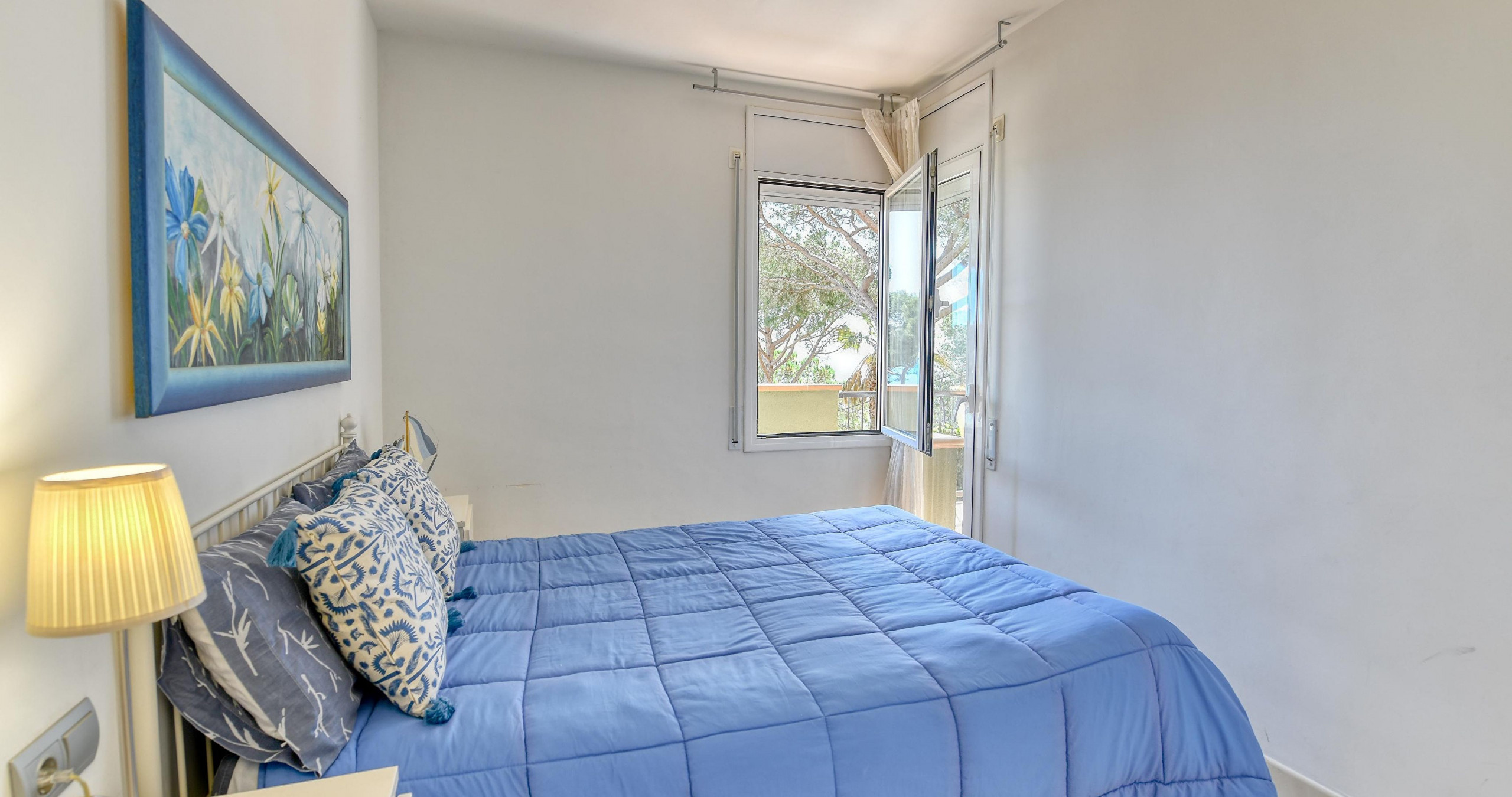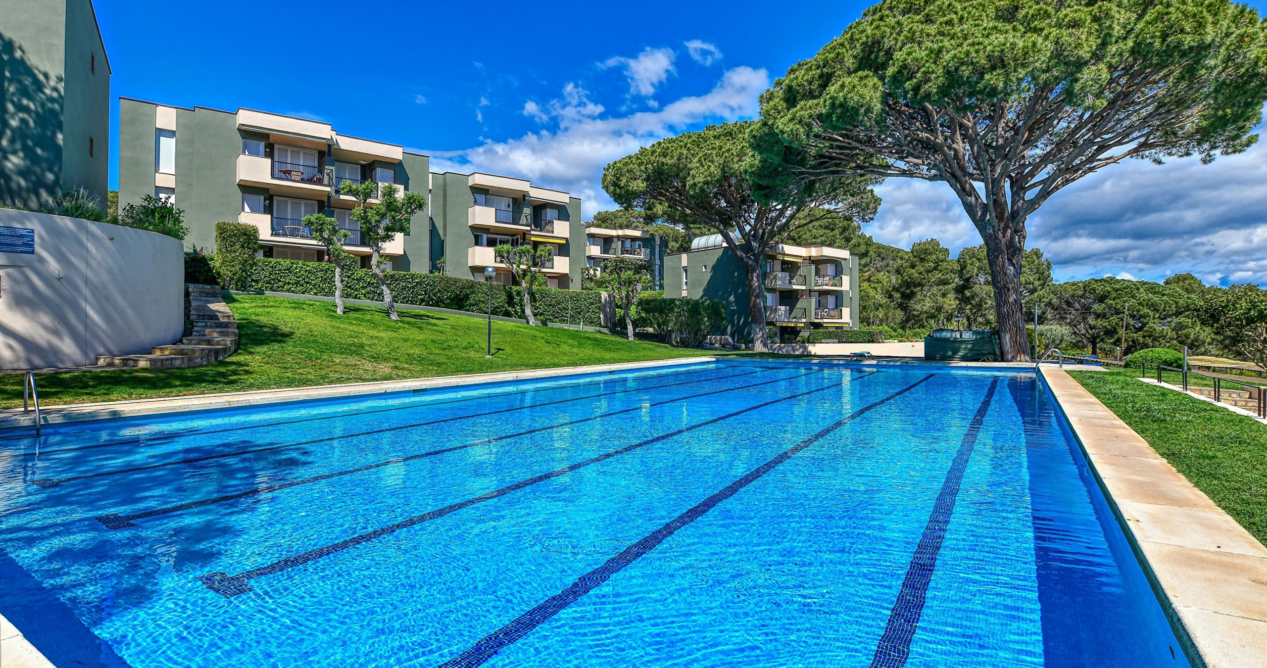 El apartamento en Calella de Palafrugell posee capacidad para 6 personas. Alojamiento de 80 m², con vistas al mar. Se encuentra a 12 m del campo de Golf "12m", 55 m del aeropuerto "55m", 400 m del supermercado "400m", 1 km de la playa de arena "1000m", 1 km de la playa de roca "1000m".Dispone de pista de tenis, calefacción bomba de calor, aire acondicionado, piscina comunitaria, parking aire libre en edificio cercano, 1 Televisor.La cocina independiente, eléctrica, está equipada con nevera, horno, vajilla/cubertería y utensilios/cocina.