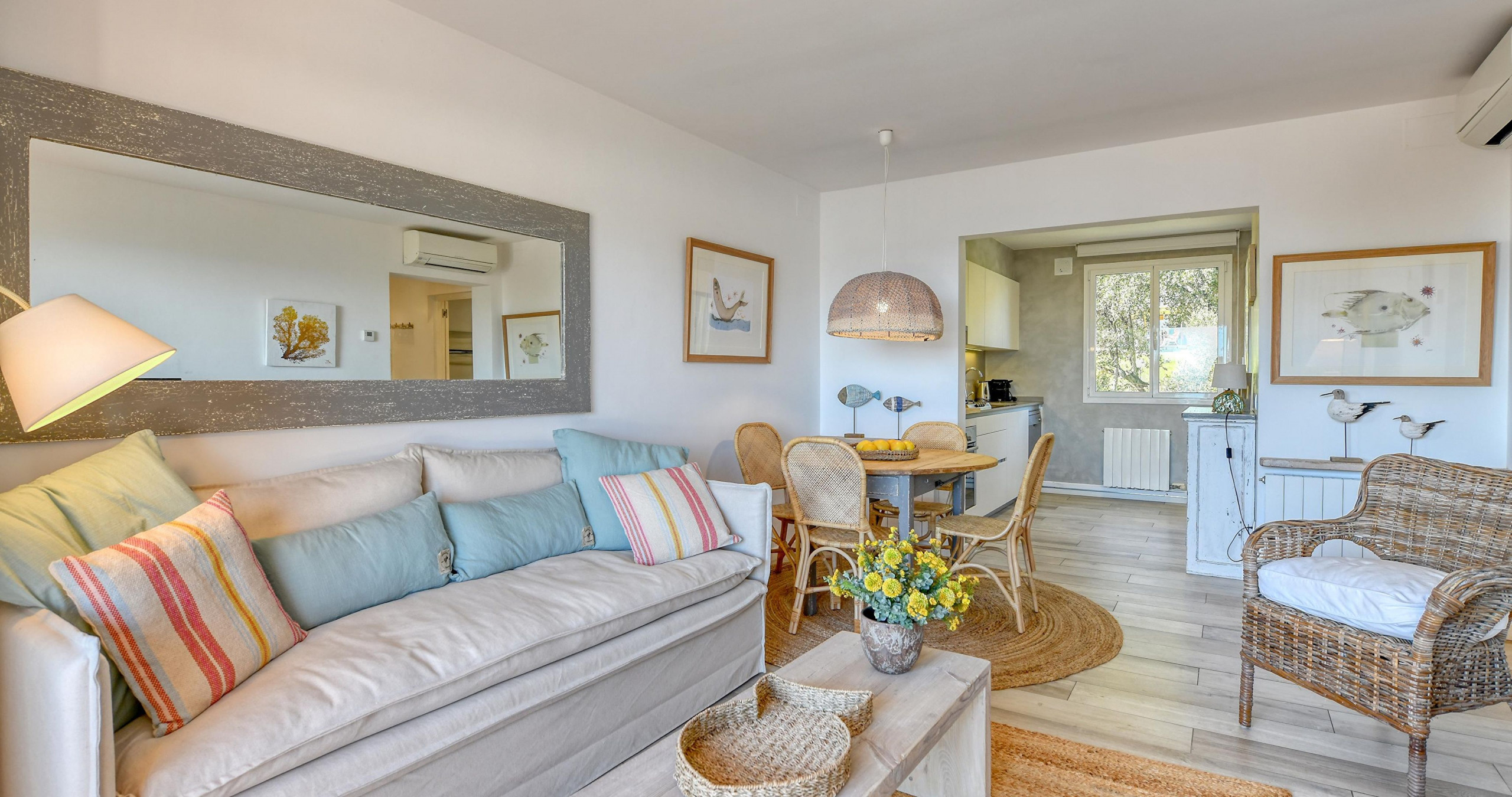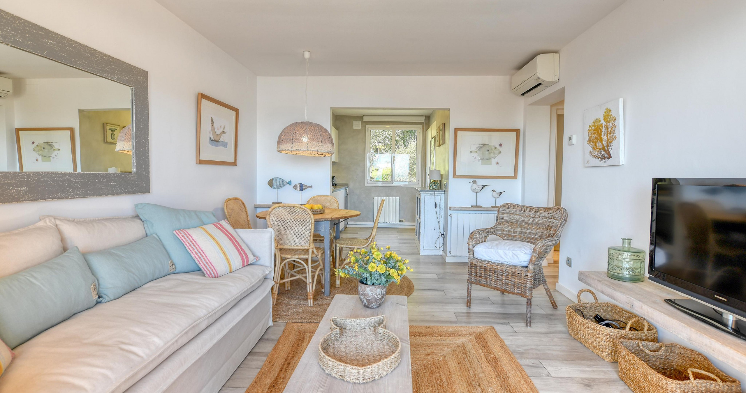 Uno de los puntos fuertes de este alojamiento es su aire acondicionado en la sala de estar, perfecto para los días más calurosos del verano. La cocina completamente equipada permite preparar comidas deliciosas con electrodomésticos modernos como lavadora, lavavajillas, horno, microondas y cafetera.