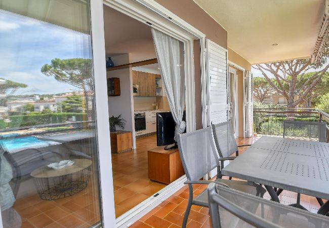 El apartamento en Calella de Palafrugell posee capacidad para 4 personas. Alojamiento de 65 m². Se encuentra a 12 m del campo de Golf "12m", 55 m del aeropuerto "55m", 300 m del supermercado "300m", 400 m de la playa de arena "400m", 400 m de la playa de roca "400m".Dispone de lavadora, plancha, piscina comunitaria, parking cubierto en edificio cercano.La cocina americana, de gas, está equipada con nevera, horno, lavavajillas, vajilla/cubertería, utensilios/cocina y cafetera.