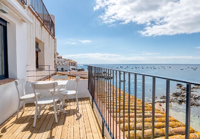 El apartamento en Calella de Palafrugell posee capacidad para 6 personas. Alojamiento de 150 m², situado en primera línea de playa, con vistas al mar. Se encuentra a 18 m del campo de Golf "18m", 45 m del aeropuerto "45m", 100 m del supermercado "100m". Dispone de plancha, acceso internet (wifi), calefacción bomba de calor, aire acondicionado, parking cubierto en edificio cercano, 1 Televisor. La cocina independiente, eléctrica, está equipada con nevera, vajilla/cubertería, utensilios/cocina y cafetera.