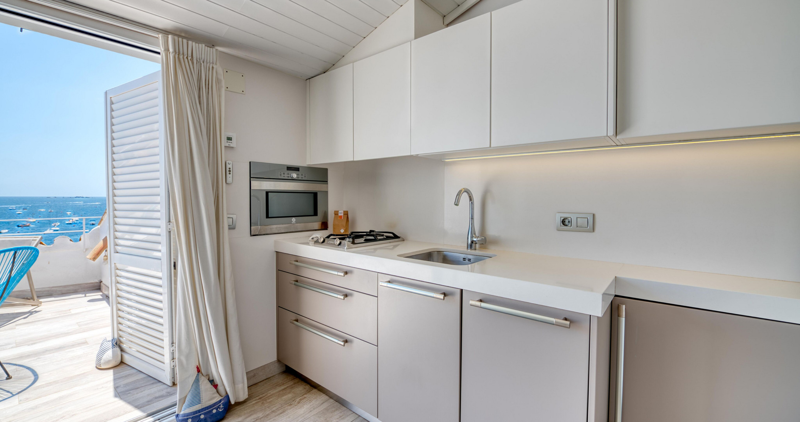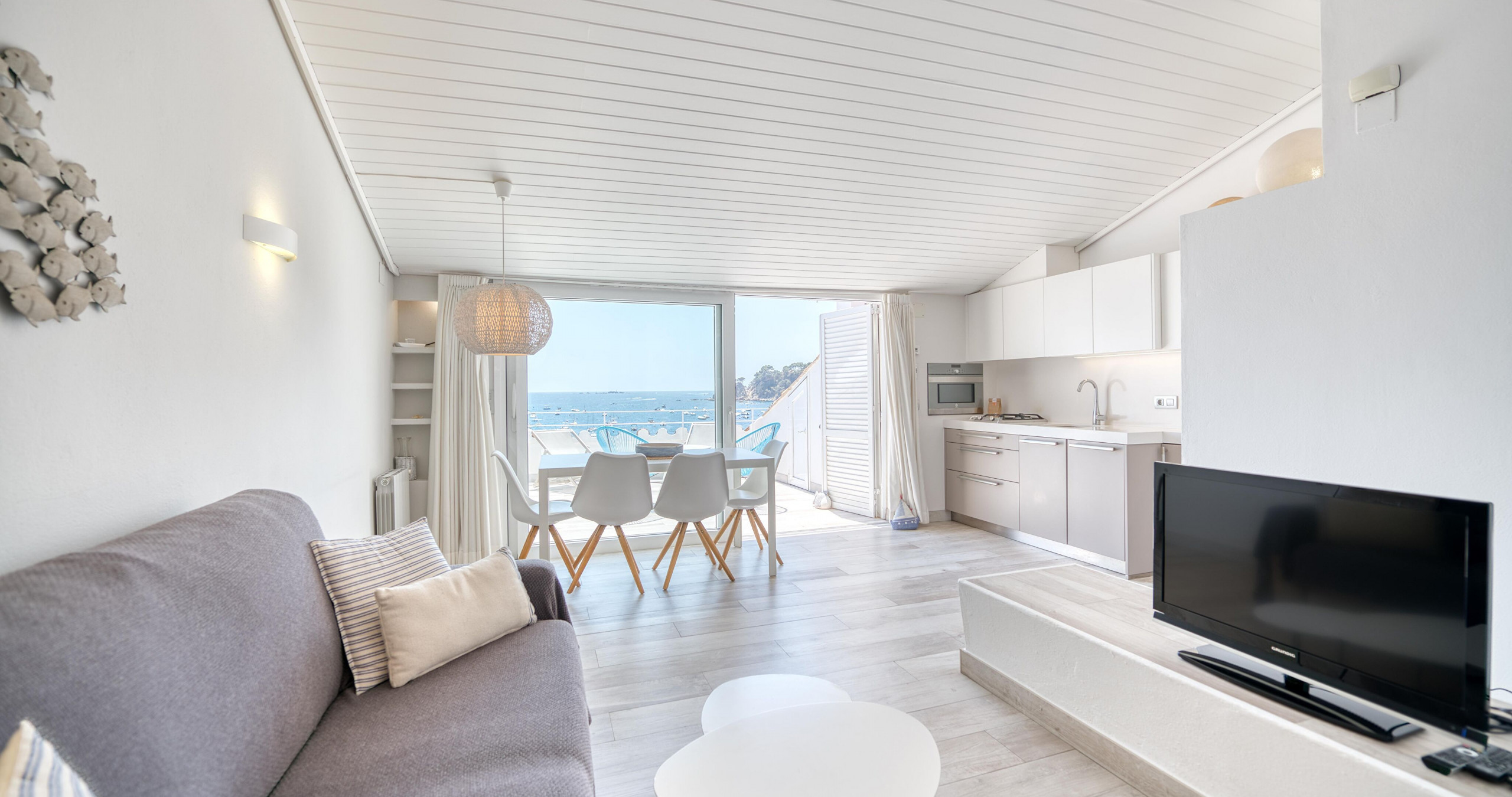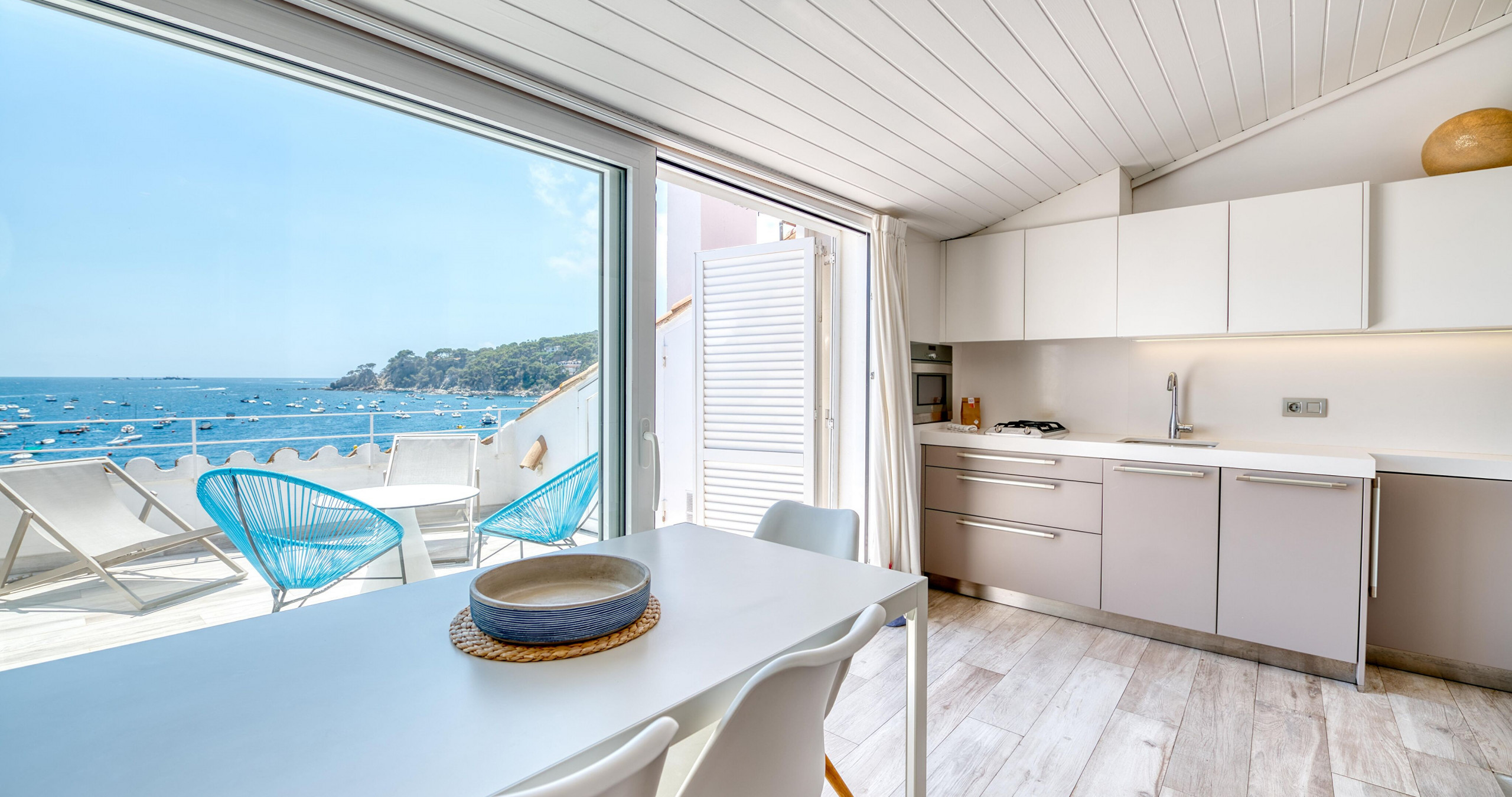 Appartement à Calella de Palafrugell qui possède Capacité pour 4 personnes. Logement de 30 m², situé en front de plage, avec vue sur la mer. La location se trouve à 10 m de la plage de sable "10m", 10 m de la plage de roche "10m", 12 m du domaine de Golf "12m", 50 m de l'aéroport "50m", 100 m du supermarché "100m".Elle dispose de fer à repasser, accès internet (wifi), chauffage pompe à chaleur, climatisation, parking couvert bâtiment proche, 1 Télévision.La cuisine indépendante, Électrique, est équipée avec réfrigérateur, four, vaisselle/couverts, ustensiles/cuisine, cafetière et grille pain.