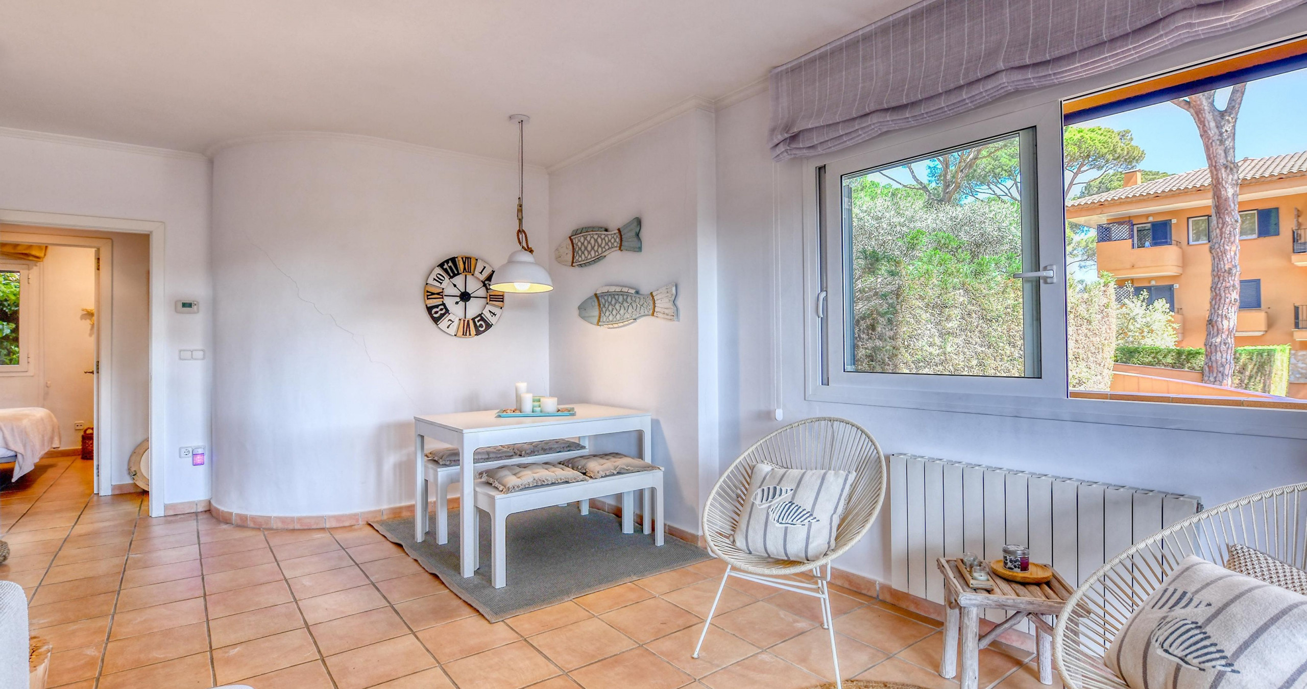 Appartement à Calella de Palafrugell qui possède Capacité pour 4 personnes. Logement de 70 m². La location se trouve à 18 m du domaine de Golf "18m", 48 m de l'aéroport "48m", 200 m de la plage de sable "200m", 200 m de la plage de roche "200m", 1 km du supermarché "1200m".Elle dispose de chauffage central, piscine collective, parking couvert bâtiment proche, 1 Télévision.La cuisine indépendante, Électrique, est équipée avec réfrigérateur, four, vaisselle/couverts, ustensiles/cuisine et cafetière.