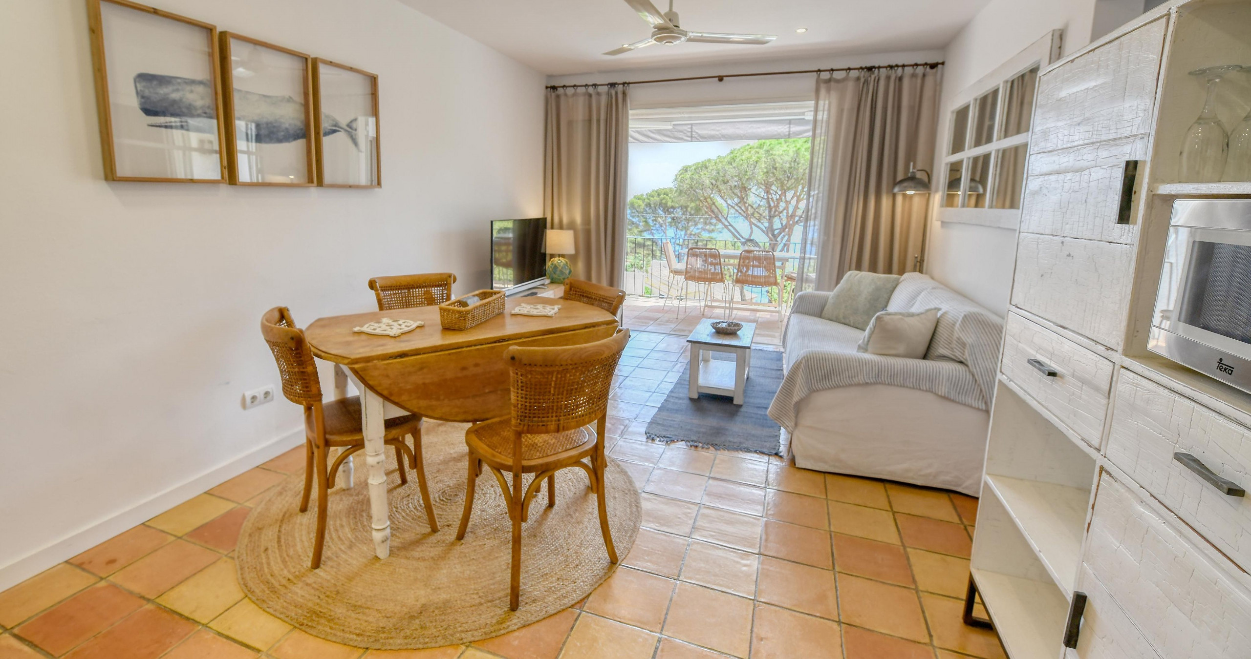 Appartement à Calella de Palafrugell qui possède 3 chambre(s) et Capacité pour 6 personnes. Logement de 56 m² accueillant et très lumineux, situé en front de plage, avec vue sur la mer. La location se trouve à 75 m de la plage de sable, 75 m de la plage de roche, 260 m du supermarché, 6 km de la gare routière, 14 km de l'hôpital, 14 km du domaine de Golf, 21 km du parc aquatique, 50 km de l'aéroport, 50 km de la gare, 140 km de l'aéroport et il est situé dans une zone tranquille zone et près de la mer.Elle dispose de terrasse, lave-linge, fer à repasser, accès internet (wifi), 1 Télévision.La cuisine américaine, à induction, est équipée avec réfrigérateur, micro-ondes, four, congélateur, lave-vaisselle, vaisselle/couverts, ustensiles/cuisine, cafetière, grille pain et bouilloire.