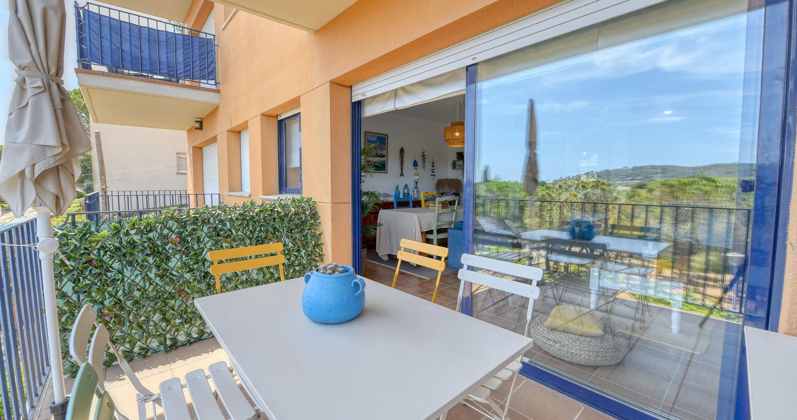 Appartement à Calella de Palafrugell qui possède Capacité pour 4 personnes. Logement de 77 m² de construction récente. Elle dispose de ascenseur, lave-linge, fer à repasser, chauffage pompe à chaleur, piscine collective, parking couvert bâtiment proche, 1 Télévision.La cuisine indépendante, à vitrocéramique, est équipée avec réfrigérateur, micro-ondes, four, vaisselle/couverts, ustensiles/cuisine et cafetière.