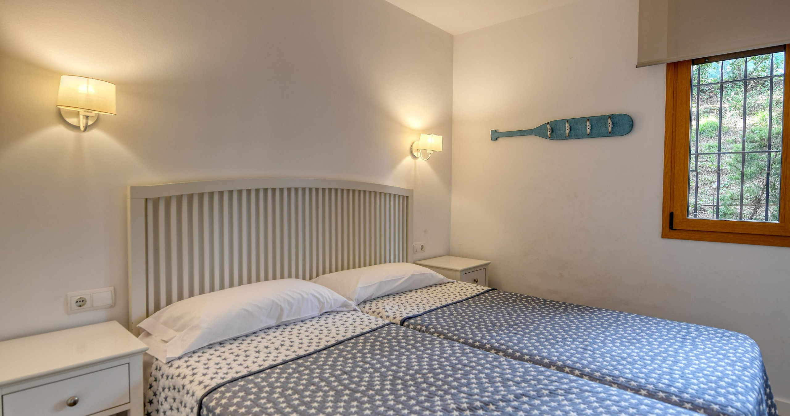 Appartement à Calella de Palafrugell qui possède Capacité pour 6 personnes. Logement de 104 m². La location se trouve à 12 m du domaine de Golf "12m", 55 m de l'aéroport "55m", 250 m du supermarché "250m".Elle dispose de fer à repasser, accès internet (wifi), chauffage pompe à chaleur, climatisation, piscine collective, parking extérieur bâtiment proche, 1 Télévision.La cuisine indépendante, Électrique, est équipée avec réfrigérateur, four, vaisselle/couverts, ustensiles/cuisine, cafetière et grille pain.