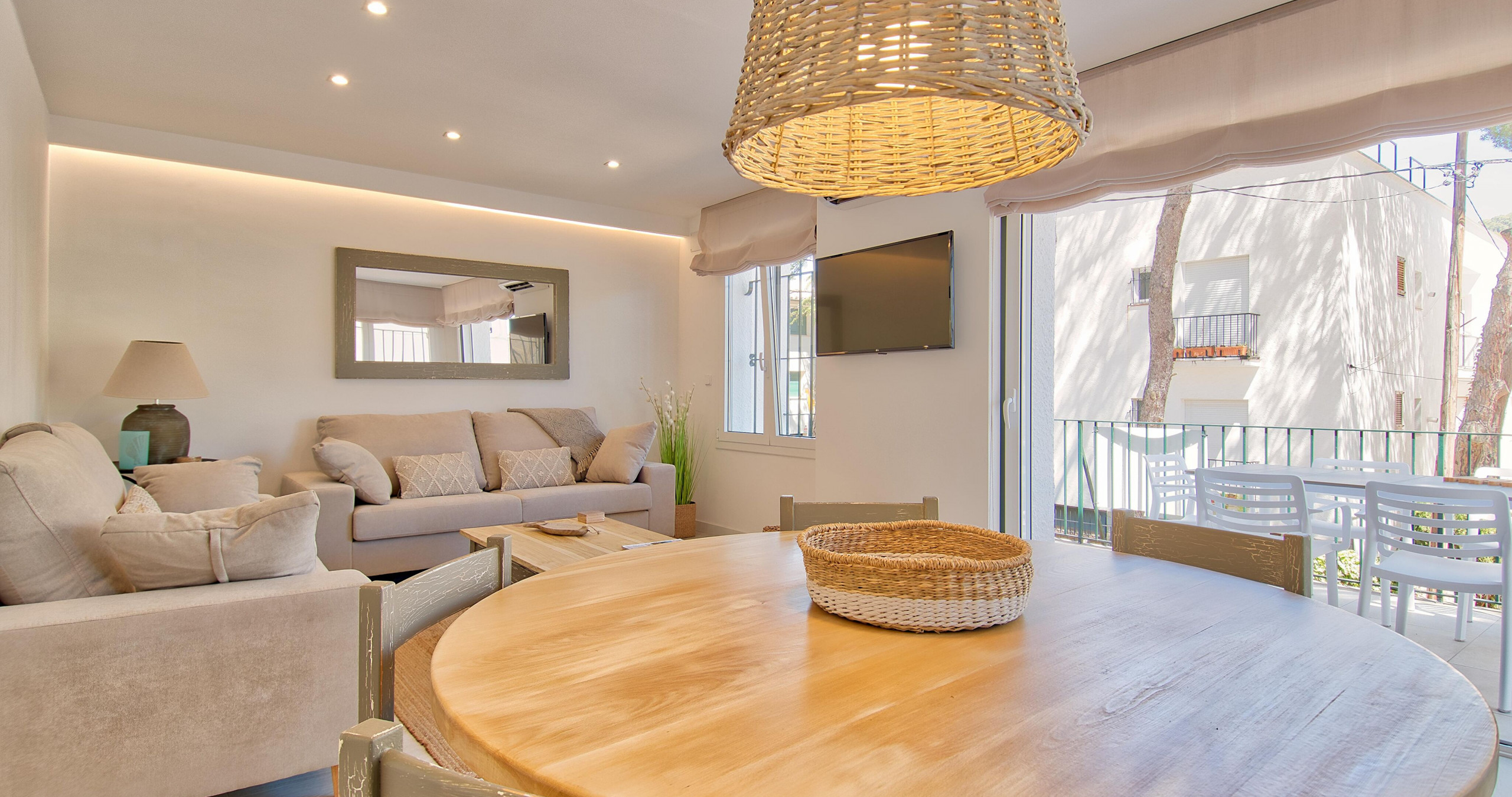 L'appartement dispose d'un design intérieur soigneusement pensé, mettant en valeur sa terrasse qui invite à profiter de moments de tranquillité. L'espace de vie est équipé de la climatisation pour maintenir une atmosphère fraîche pendant les journées les plus chaudes. La cuisine est entièrement équipée d'appareils électroménagers modernes tels que lave-linge, lave-vaisselle, four, micro-ondes et cafetière, facilitant la préparation des repas pendant votre séjour.