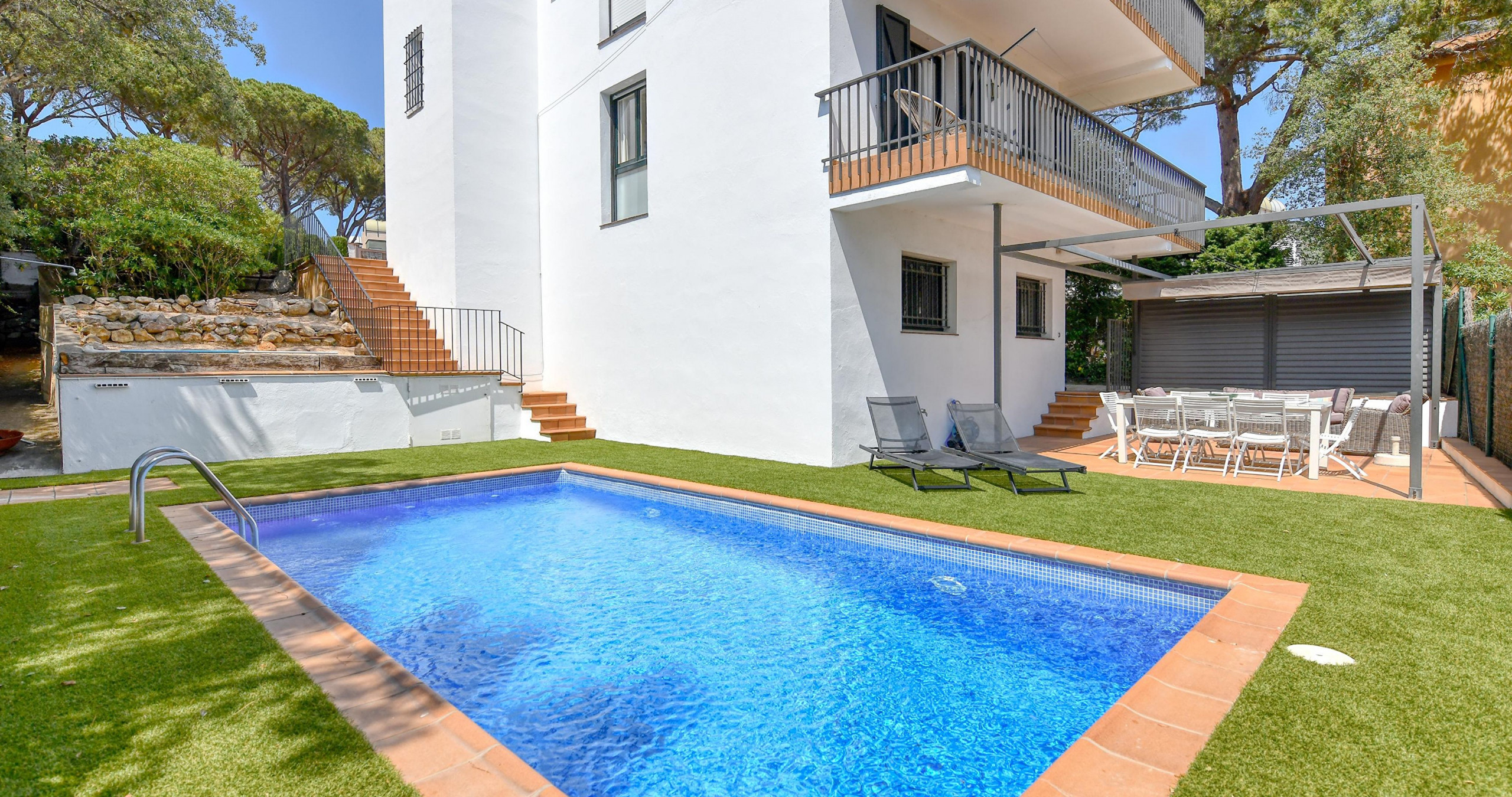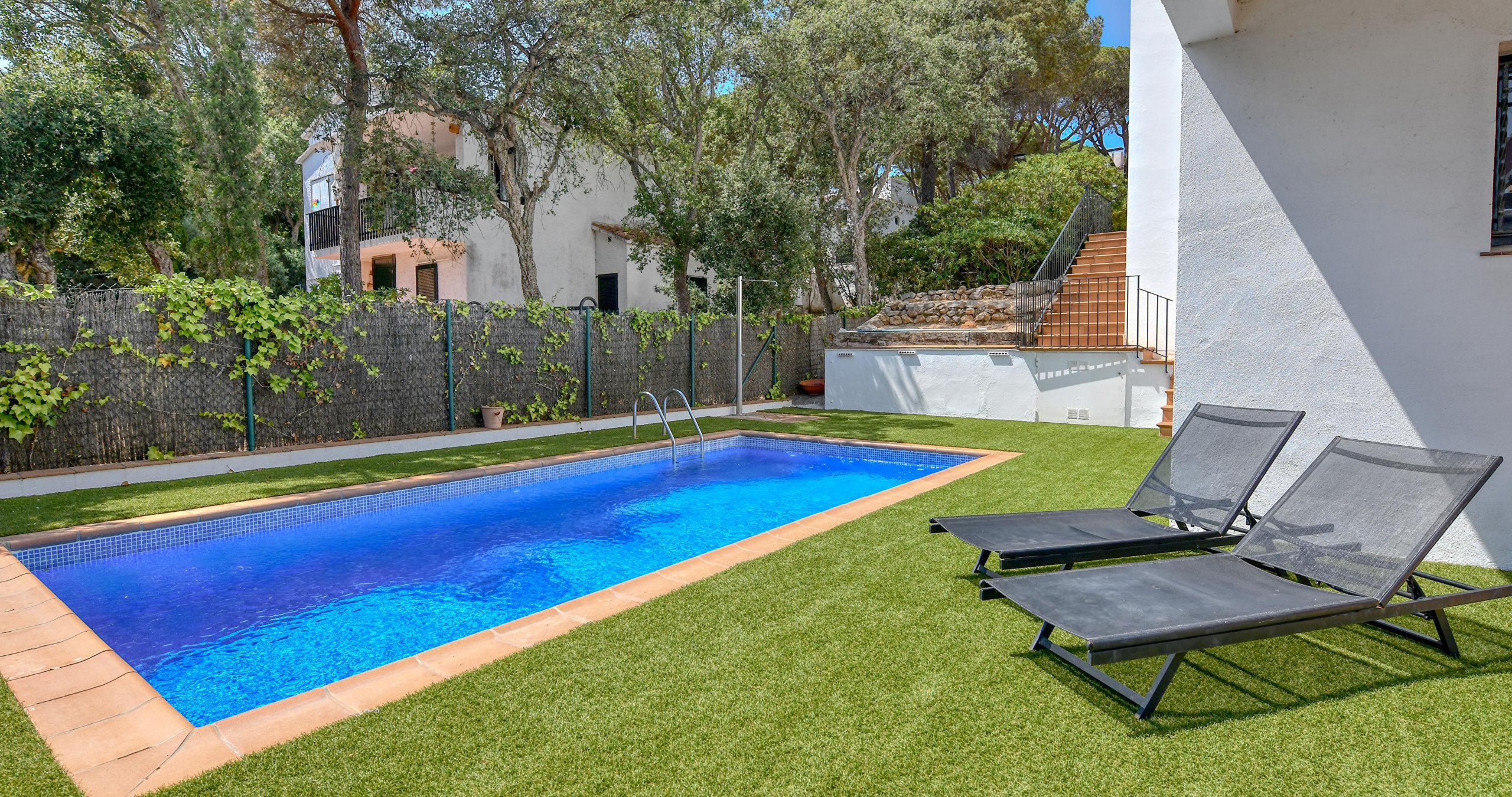 Chalet contemporain exclusif avec piscine privée à Calella de Palafrugell, conçu pour ceux qui recherchent l'intimité, le confort et une expérience sophistiquée sur la Costa Brava. Cette élégante propriété de 275 m² combine l'espace, le design moderne et un environnement naturel privilégié, créant le cadre parfait pour des vacances mémorables. Intimité et confort dans chaque détailLa maison dispose de 4 chambres spacieuses, toutes avec leur propre salle de bain en suite, garantissant un confort et une intimité maximaux pour chaque hôte. Une distribution pensée pour des séjours exclusifs, en famille ou entre amis. Espaces extérieurs exceptionnelsLe jardin méditerranéen soigné entoure une spectaculaire piscine privée de 12x4 mètres, idéale pour se détendre dans une atmosphère calme et réservée. La vaste terrasse et l'espace barbecue invitent à profiter de longues soirées en plein air, dans un environnement intime et élégant. Intérieurs élégants et fonctionnelsL'intérieur offre un équilibre parfait entre le design contemporain et la chaleur, avec une cuisine ouverte entièrement équipée et des espaces pensés pour le confort toute l'année, incluant une climatisation intégrale et une connexion WiFi haut débit. Localisation stratégique avec une valeur ajoutée uniqueSitué dans une zone résidentielle tranquille entourée de nature, le chalet se trouve à quelques minutes des plus belles criques de Calella de Palafrugell. De plus, il inclut une place de parking privée au centre du village, un véritable privilège qui vous permettra d'accéder facilement aux plages, restaurants et au cœur de la vie locale sans soucis de stationnement. Une propriété unique qui combine le design, l'intimité et une localisation privilégiée, idéale pour ceux qui recherchent une expérience exclusive dans l'une des destinations les plus convoitées de la Costa Brava.