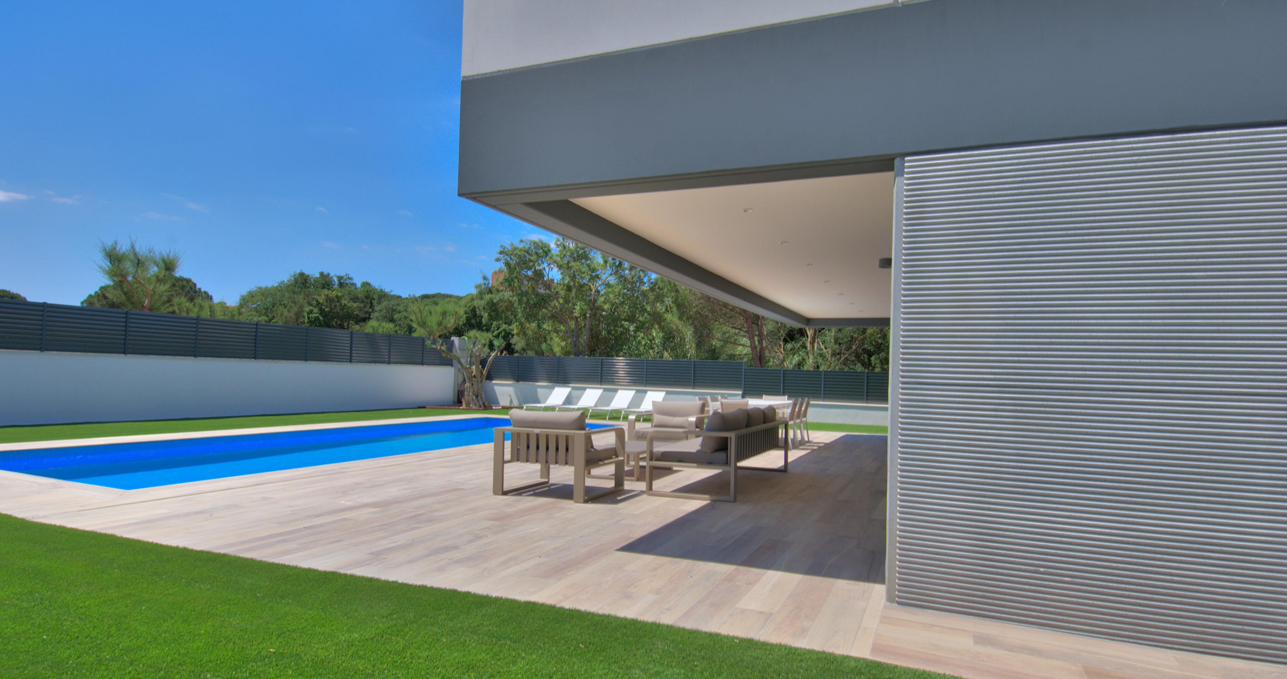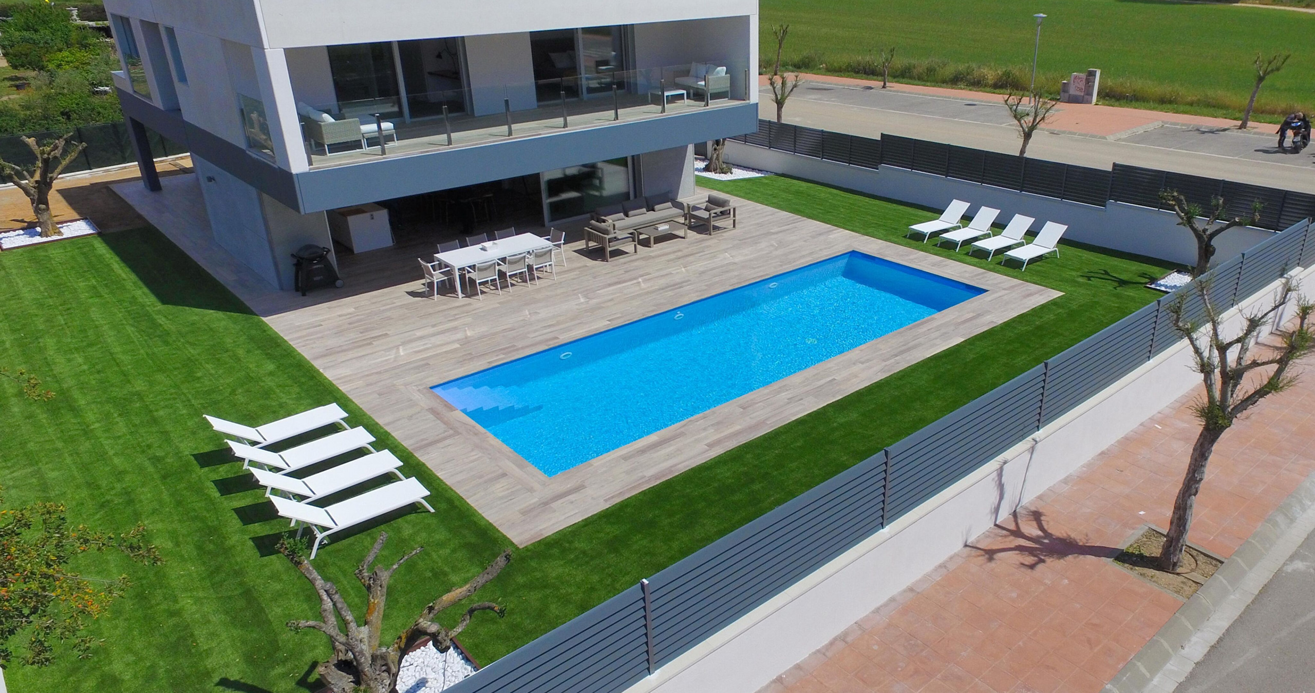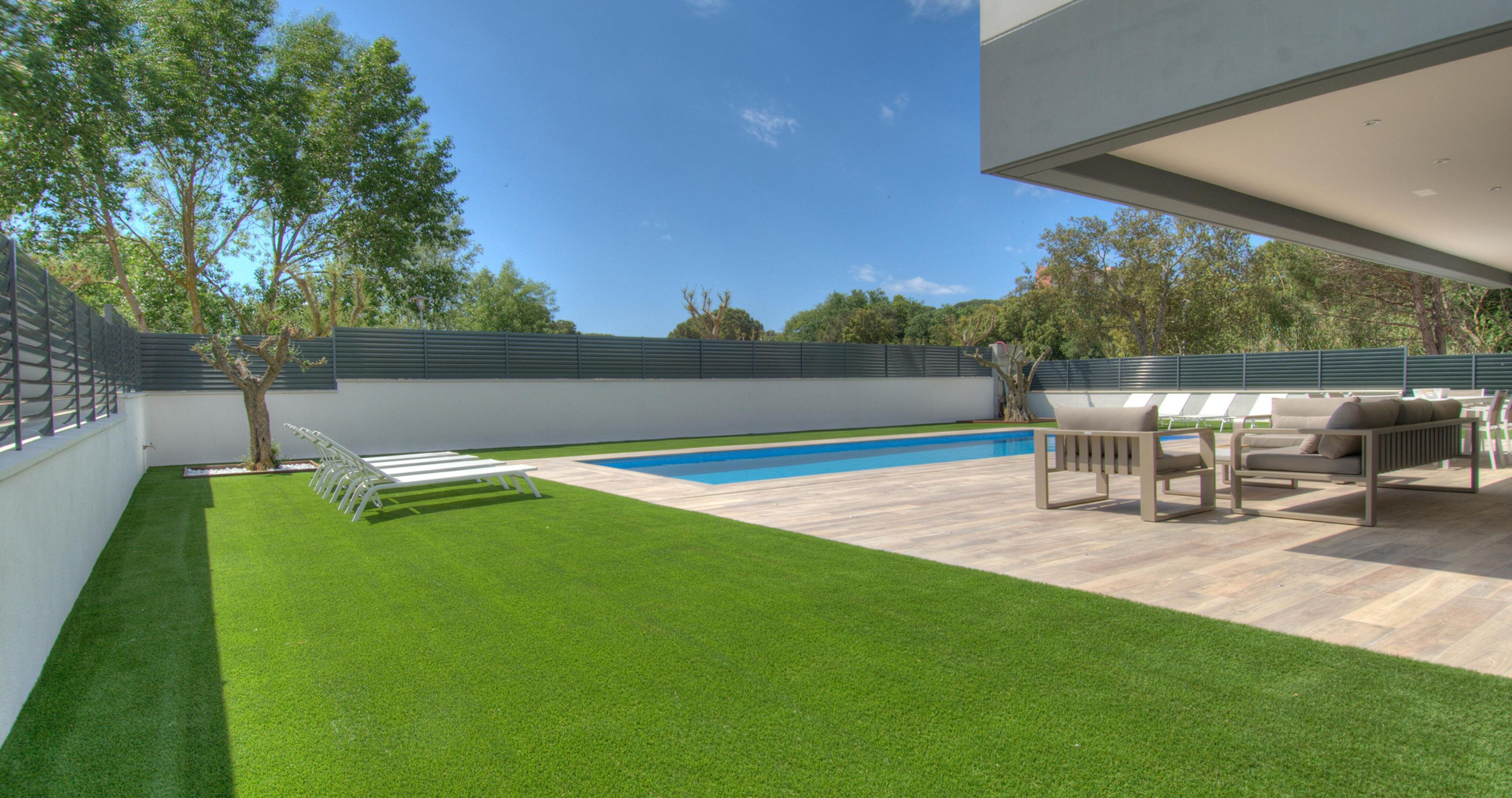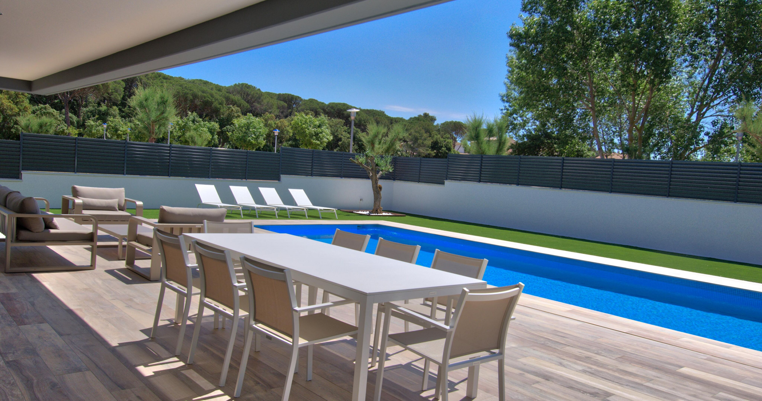 Espaces extérieurs exceptionnels Le jardin méditerranéen soigné entoure une spectaculaire piscine privée de 12x4 mètres, idéale pour se détendre dans une atmosphère calme et réservée. La vaste terrasse et l'espace barbecue invitent à profiter de longues soirées en plein air, dans un environnement intime et élégant.