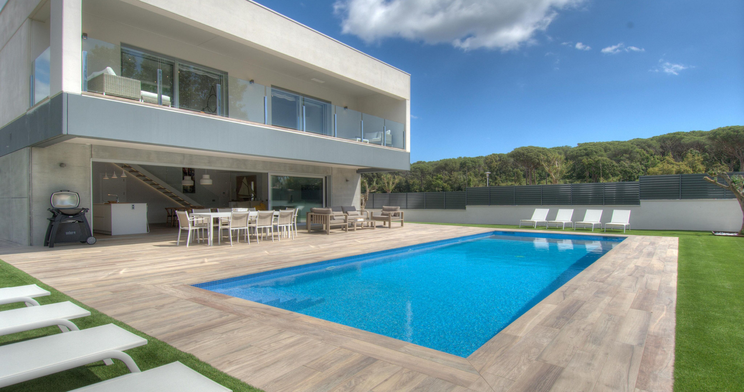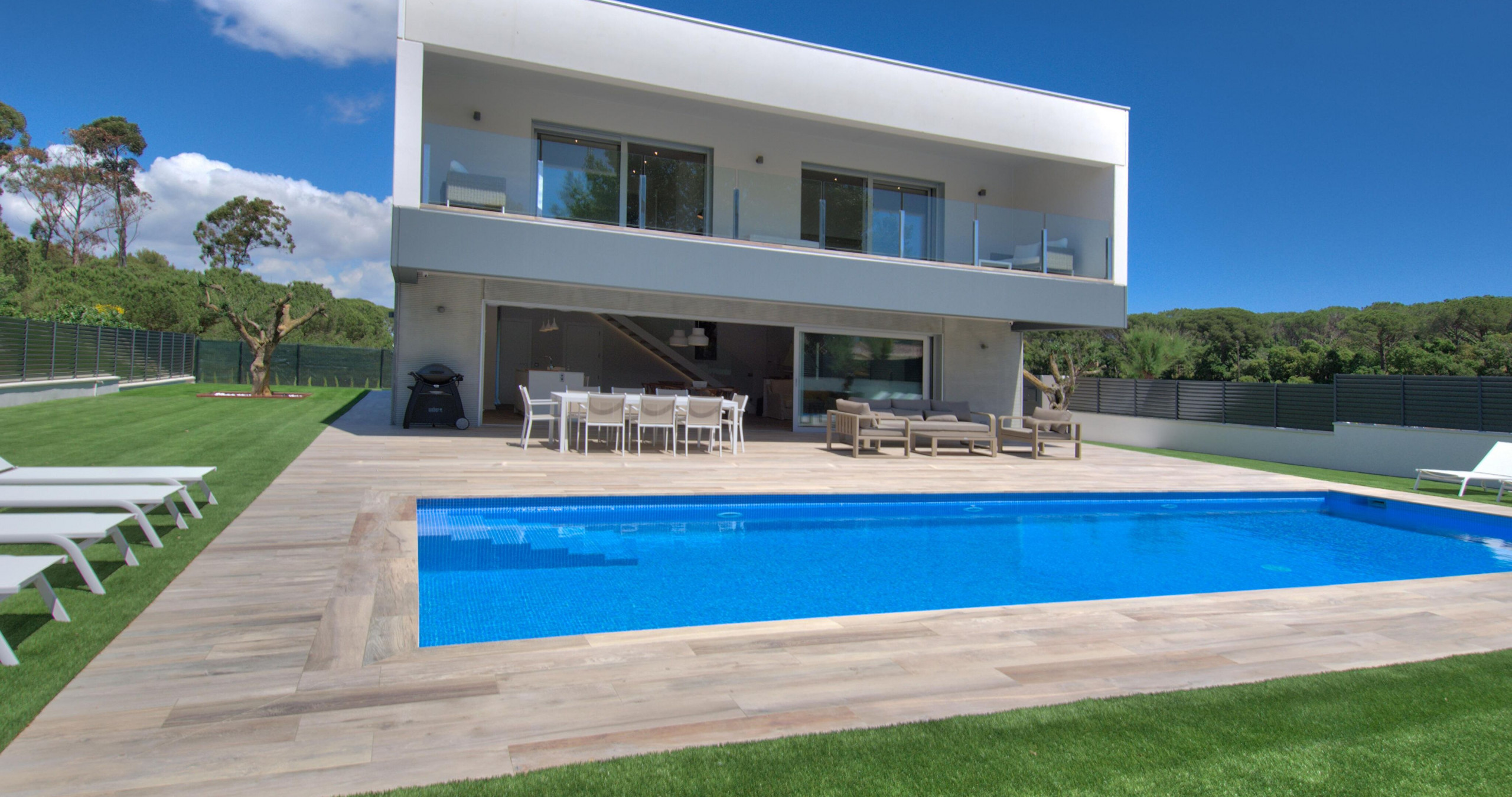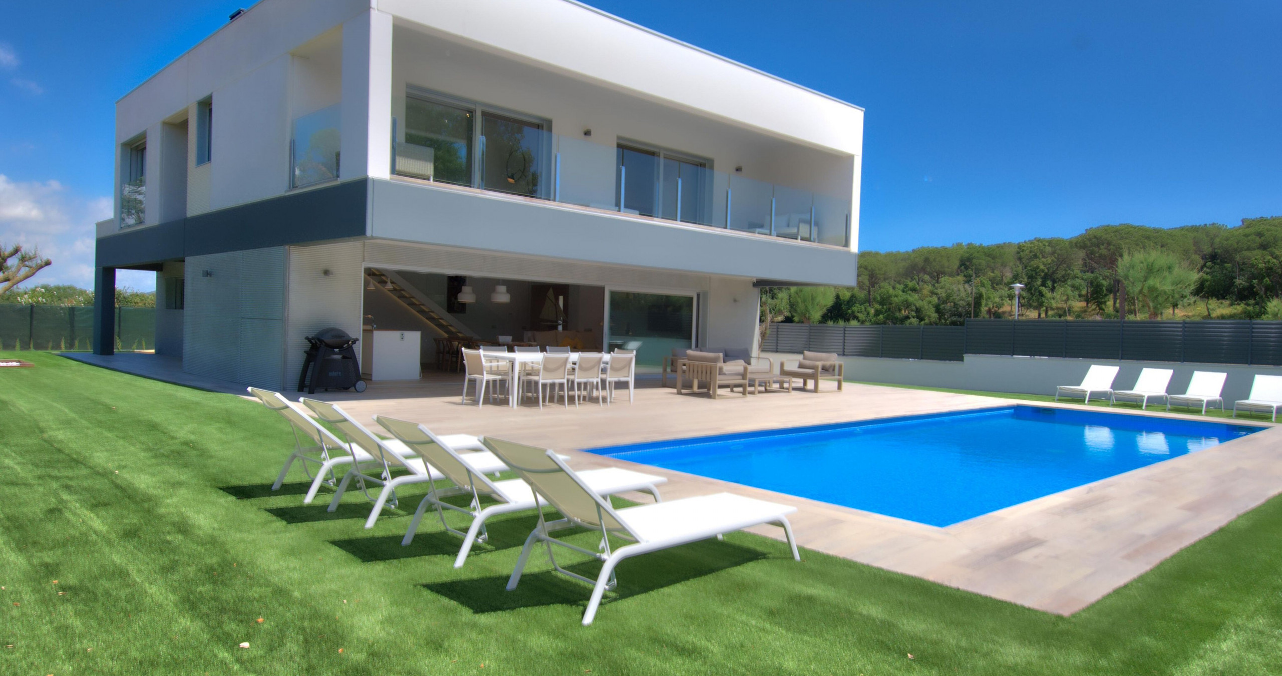 Chalet contemporain exclusif avec piscine privée à Calella de Palafrugell, conçu pour ceux qui recherchent l'intimité, le confort et une expérience sophistiquée sur la Costa Brava. Cette élégante propriété de 275 m² combine l'espace, le design moderne et un environnement naturel privilégié, créant le cadre parfait pour des vacances mémorables. Intimité et confort dans chaque détailLa maison dispose de 4 chambres spacieuses, toutes avec leur propre salle de bain en suite, garantissant un confort et une intimité maximaux pour chaque hôte. Une distribution pensée pour des séjours exclusifs, en famille ou entre amis. Espaces extérieurs exceptionnelsLe jardin méditerranéen soigné entoure une spectaculaire piscine privée de 12x4 mètres, idéale pour se détendre dans une atmosphère calme et réservée. La vaste terrasse et l'espace barbecue invitent à profiter de longues soirées en plein air, dans un environnement intime et élégant. Intérieurs élégants et fonctionnelsL'intérieur offre un équilibre parfait entre le design contemporain et la chaleur, avec une cuisine ouverte entièrement équipée et des espaces pensés pour le confort toute l'année, incluant une climatisation intégrale et une connexion WiFi haut débit. Localisation stratégique avec une valeur ajoutée uniqueSitué dans une zone résidentielle tranquille entourée de nature, le chalet se trouve à quelques minutes des plus belles criques de Calella de Palafrugell. De plus, il inclut une place de parking privée au centre du village, un véritable privilège qui vous permettra d'accéder facilement aux plages, restaurants et au cœur de la vie locale sans soucis de stationnement. Une propriété unique qui combine le design, l'intimité et une localisation privilégiée, idéale pour ceux qui recherchent une expérience exclusive dans l'une des destinations les plus convoitées de la Costa Brava.