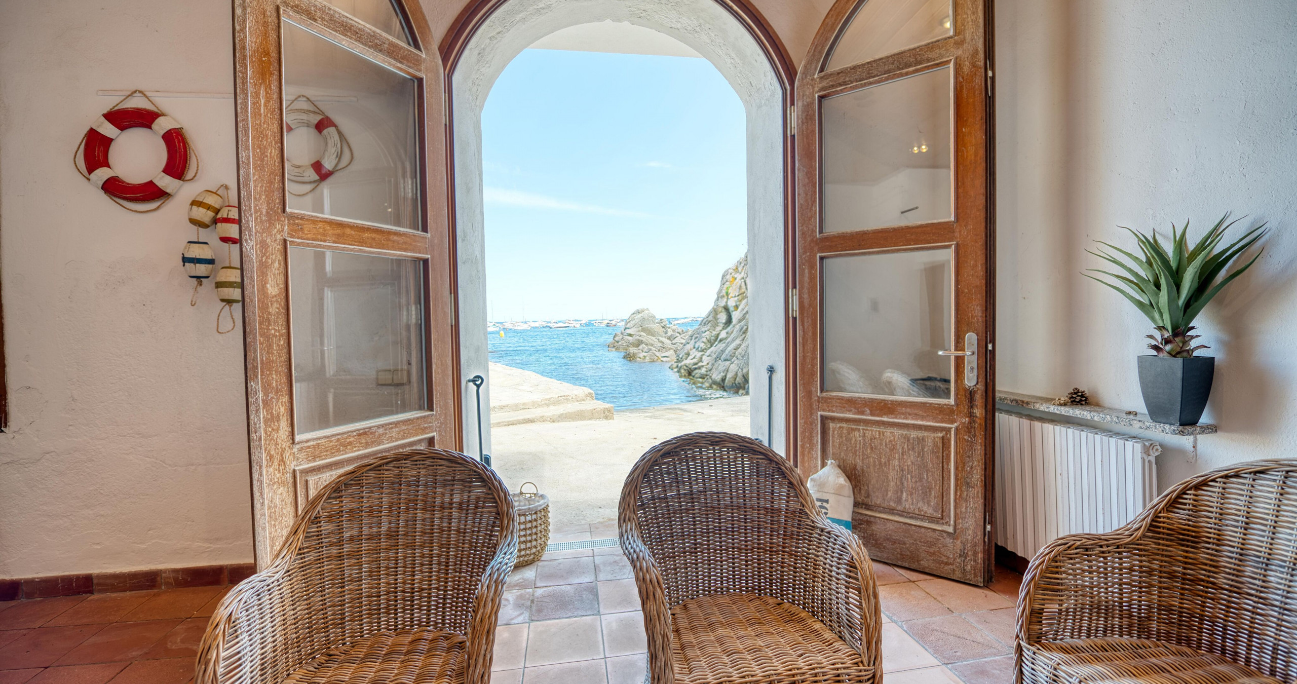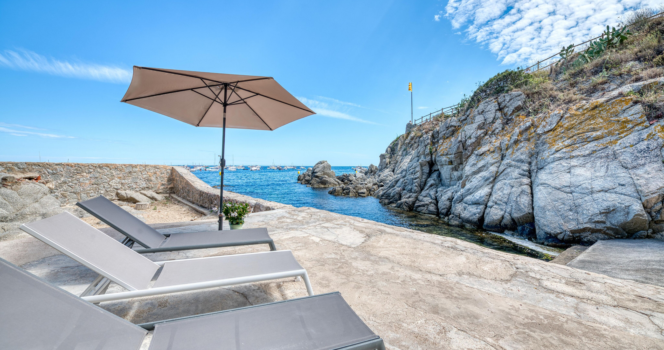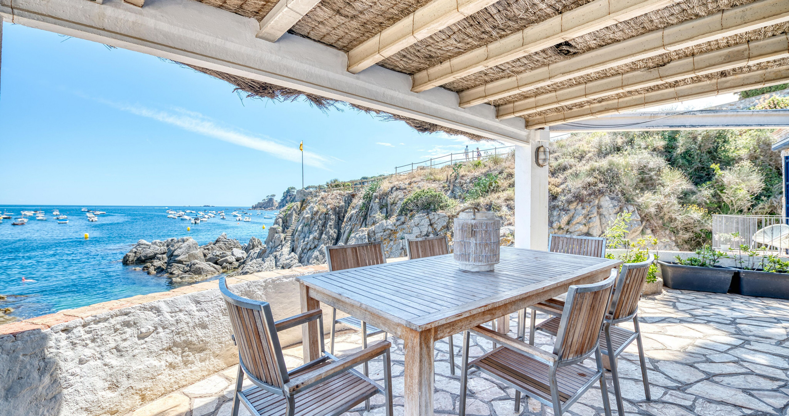 Maison à Calella de Palafrugell qui possède 4 chambre(s) et Capacité pour 7 personnes. Logement de 103 m² joli et extérieur, situé en front de plage, avec vue sur la mer. La location se trouve à 0 m de la plage de sable, 0 m de la plage de roche, 50 m de la ville, 200 m du supermarché, 6 km de la gare routière, 13 km de l'hôpital, 14 km du domaine de Golf, 21 km du parc aquatique, 50 km de la gare, 50 km de l'aéroport, 140 km de l'aéroport et il est situé dans une zone avec enchantement zone et près de la mer.Elle dispose de mobilier de jardin, terrasse, lave-linge, cheminée, fer à repasser, accès internet (wifi), chauffage central, parking couvert bâtiment proche, 1 Télévision.La cuisine indépendante, à gaz, est équipée avec réfrigérateur, micro-ondes, four, congélateur, lave-vaisselle, vaisselle/couverts, ustensiles/cuisine, cafetière, grille pain et bouilloire.
