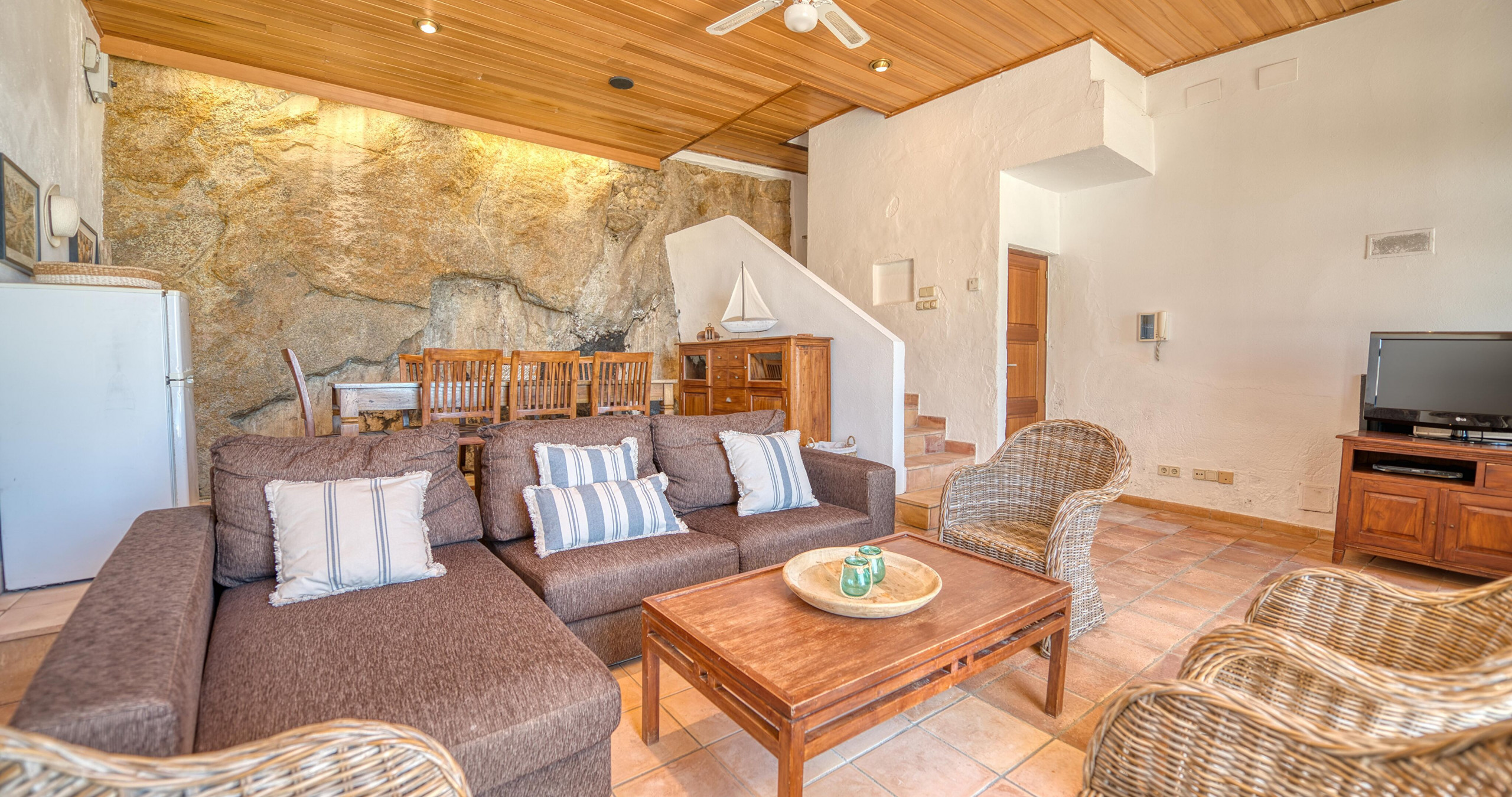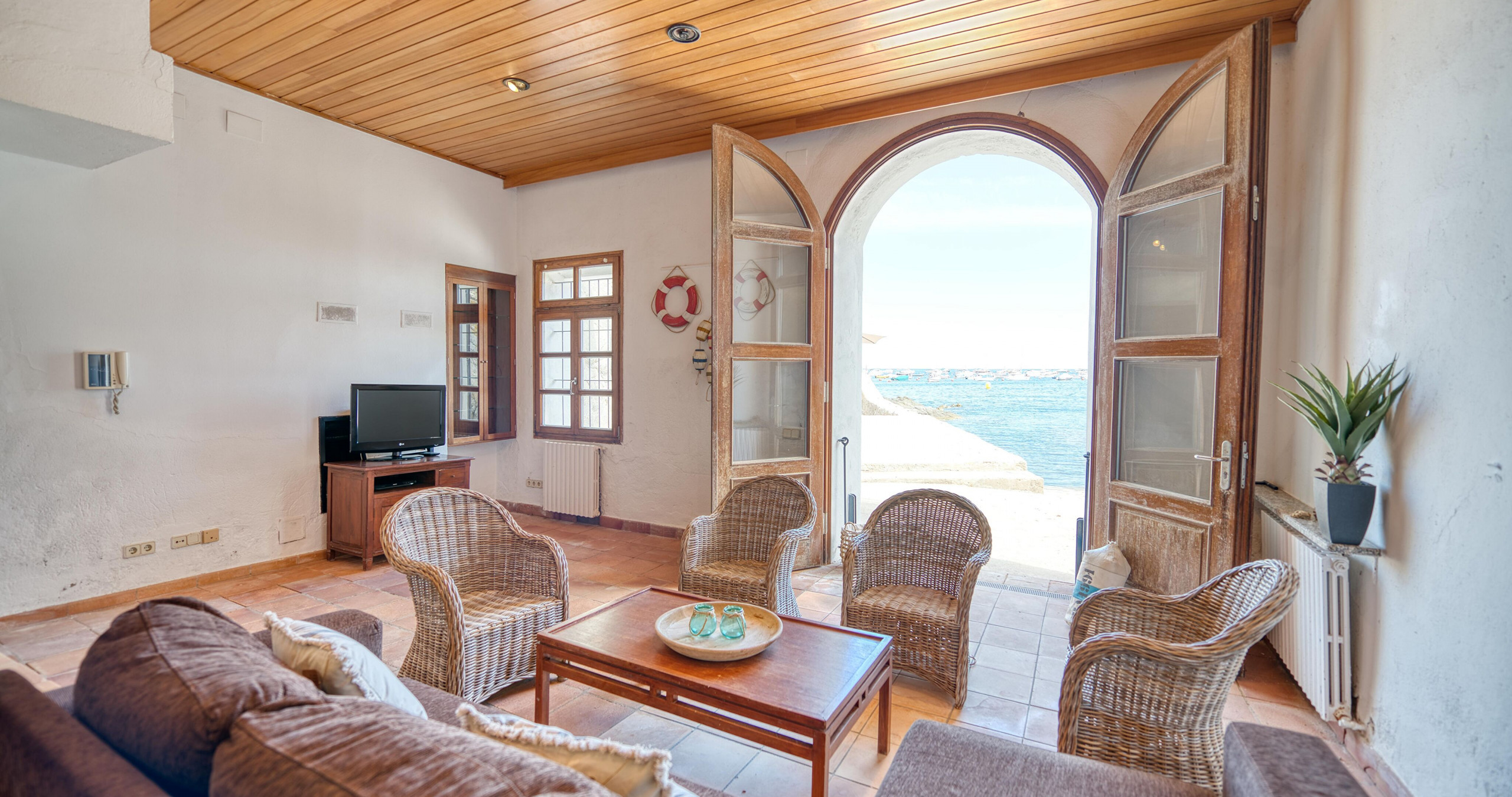Maison à Calella de Palafrugell qui possède 4 chambre(s) et Capacité pour 7 personnes. Logement de 103 m² joli et extérieur, situé en front de plage, avec vue sur la mer. La location se trouve à 0 m de la plage de sable, 0 m de la plage de roche, 50 m de la ville, 200 m du supermarché, 6 km de la gare routière, 13 km de l'hôpital, 14 km du domaine de Golf, 21 km du parc aquatique, 50 km de la gare, 50 km de l'aéroport, 140 km de l'aéroport et il est situé dans une zone avec enchantement zone et près de la mer. Elle dispose de mobilier de jardin, terrasse, lave-linge, cheminée, fer à repasser, accès internet (wifi), chauffage central, parking couvert bâtiment proche, 1 Télévision. La cuisine indépendante, à gaz, est équipée avec réfrigérateur, micro-ondes, four, congélateur, lave-vaisselle, vaisselle/couverts, ustensiles/cuisine, cafetière, grille pain et bouilloire.