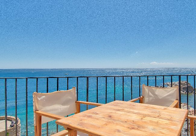 Apartament en Calella de Palafrugell posseeix capacitat per a 3 persones. Allotjament de 50 m², situat a primera línia de platja, amb vistes al mar. Es troba a 20 m de la platja de sorra "20m", 20 m de la platja de roca "20m", 150 m del supermercat "150m".Disposa de planxa, accés internet (wifi), calefacció bomba de calor, parking cobert en edifici proper, 1 Televisor.La cuina independent, eléctrica, està equipada amb nevera, forn, vaixella/coberteria, estris/cuina i cafetera.
