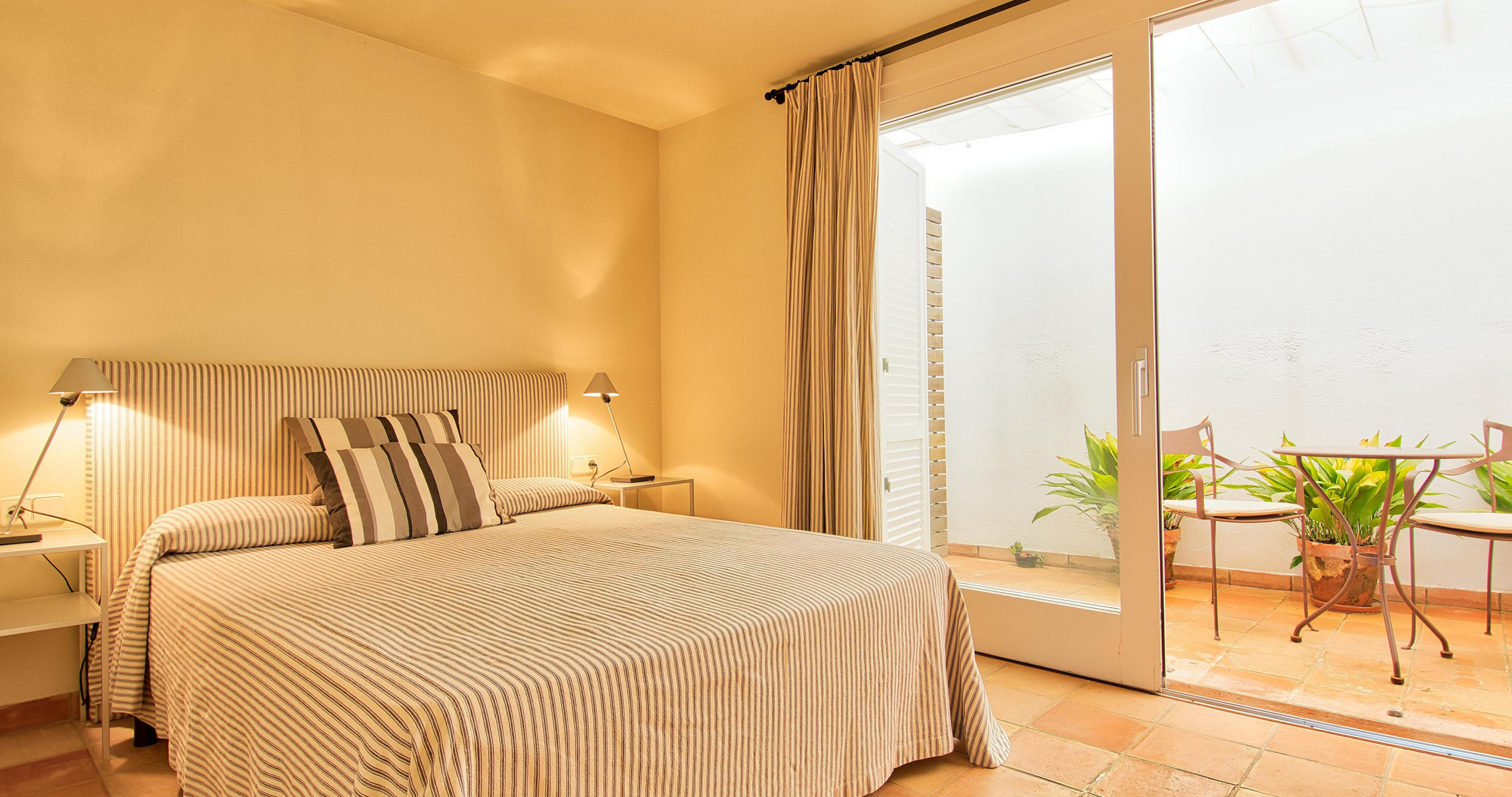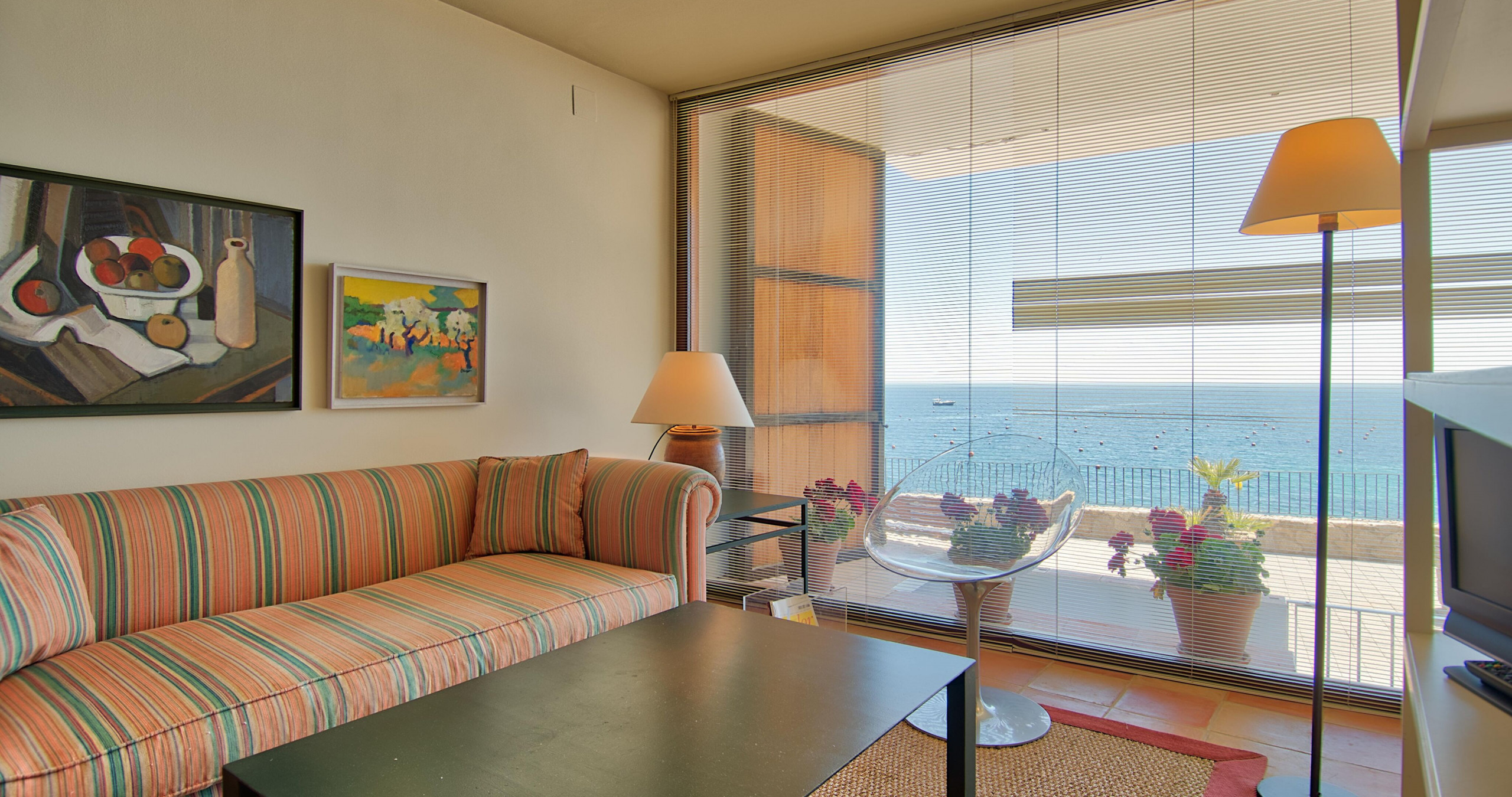 L'apartament disposa d'un dormitori amb llit de matrimoni i una zona d'estar lluminosa amb aire condicionat. La cuina americana està totalment equipada amb nevera, rentadora, rentaplats, forn, cafetera i parament de cuina complet.