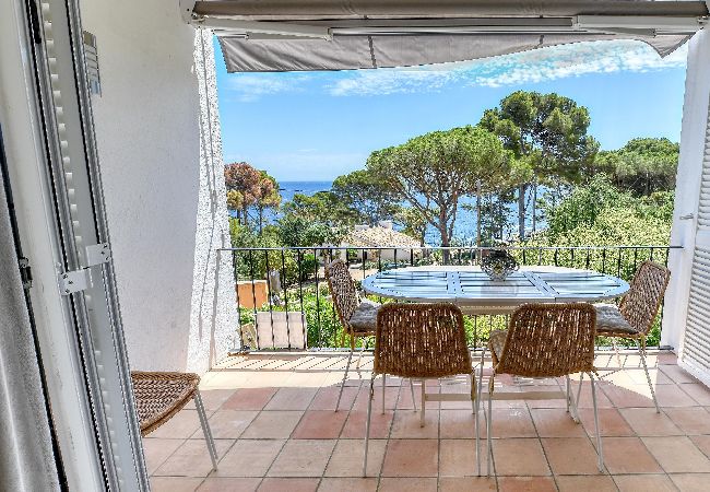 Apartament en Calella de Palafrugell posseeix 3 dormitori(s) i capacitat per a 6 persones. Allotjament de 56 m² acollidor i molt lluminós, situat a primera línia de platja, amb vistes al mar. Es troba a 75 m de la platja de sorra, 75 m de la platja de roca, 260 m del supermercat, 6 km e l'estació de autobusos, 14 km del hospital, 14 km del camp de golf, 21 km del parc aquàtic, 50 km de l'aeroport, 50 km de l'estació de trens, 140 km de l'aeroport i està situat en una zona tranquil·la i junt al mar.Disposa de terrassa, rentadora, planxa, accés internet (wifi), 1 Televisor.La cuina americana, de inducció, està equipada amb nevera, microones, forn, congelador, rentaplats, vaixella/coberteria, estris/cuina, cafetera, torradora i bullidor.