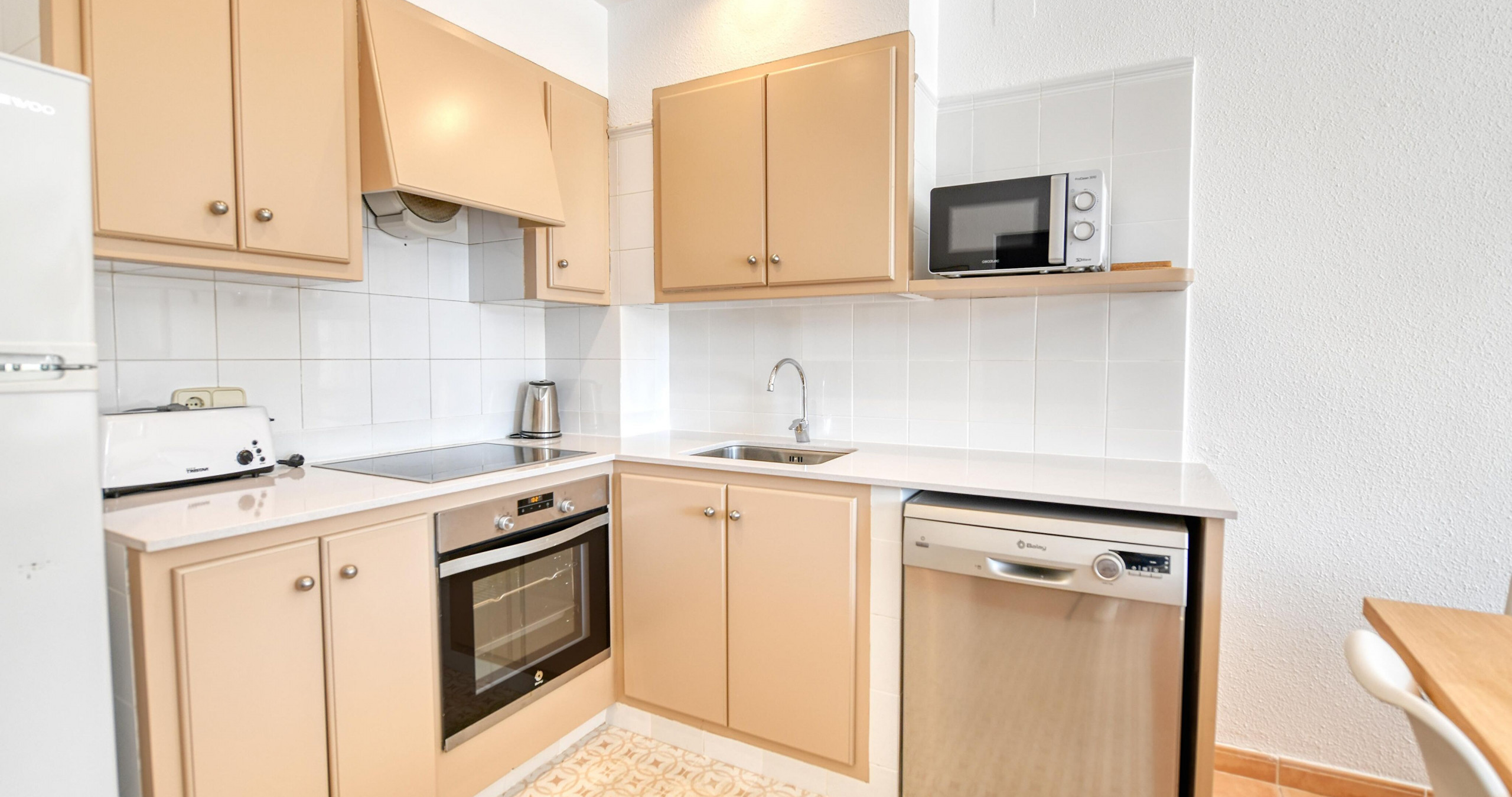 La cuina americana de vitroceràmica està totalment equipada amb nevera, congelador, forn, microones, rentavaixelles, cafetera, torrador, bullidor i tot el menatge necessari.