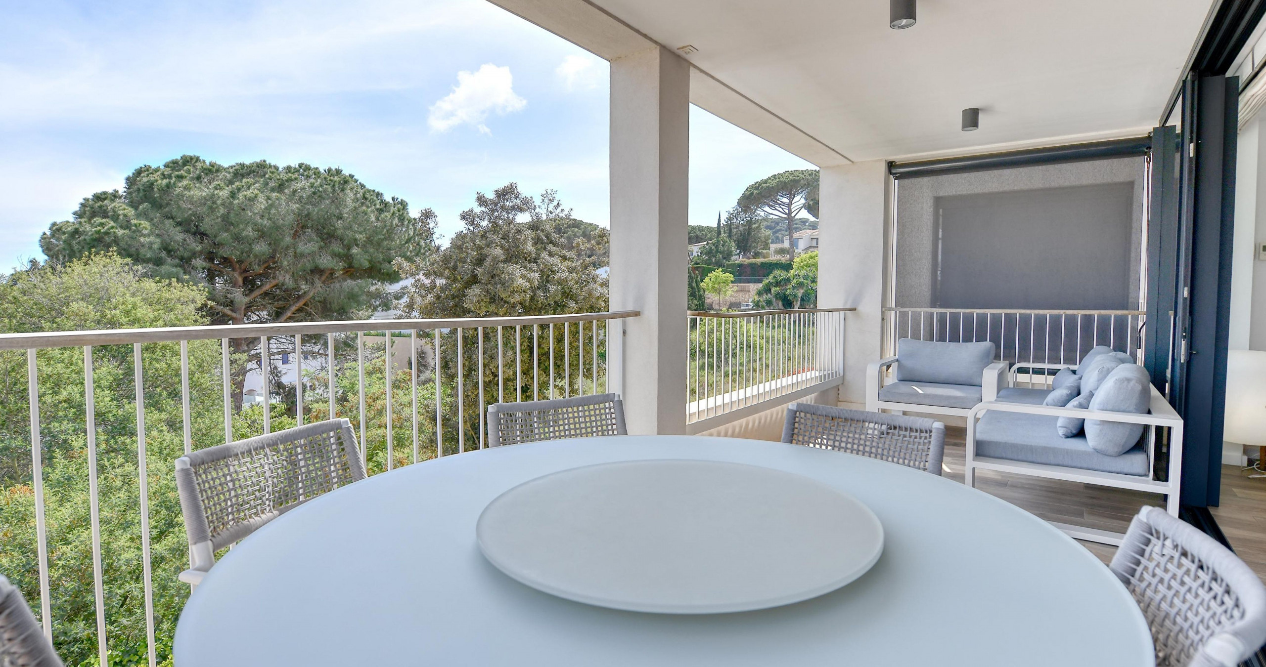 Apartament en Calella de Palafrugell posseeix capacitat per a 6 persones. Allotjament de 100 m² de recent construcció. Es troba a 200 m del supermercat "200m", 250 m de la platja de sorra "250m", 250 m de la platja de roca "250m". Disposa de ascensor, planxa, accés internet (wifi), calefacció bomba de calor, piscina comunitària, parking cobert en edifici proper, 1 Televisor. La cuina independent, eléctrica, està equipada amb nevera, forn, vaixella/coberteria, estris/cuina, cafetera i torradora.