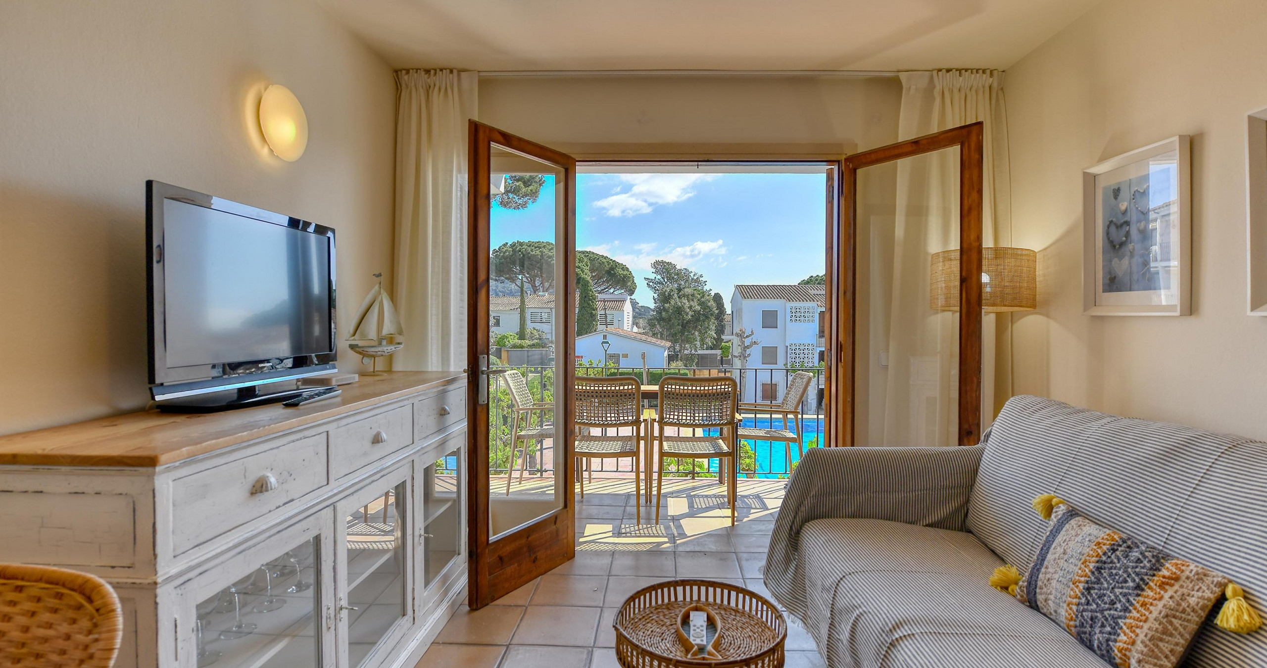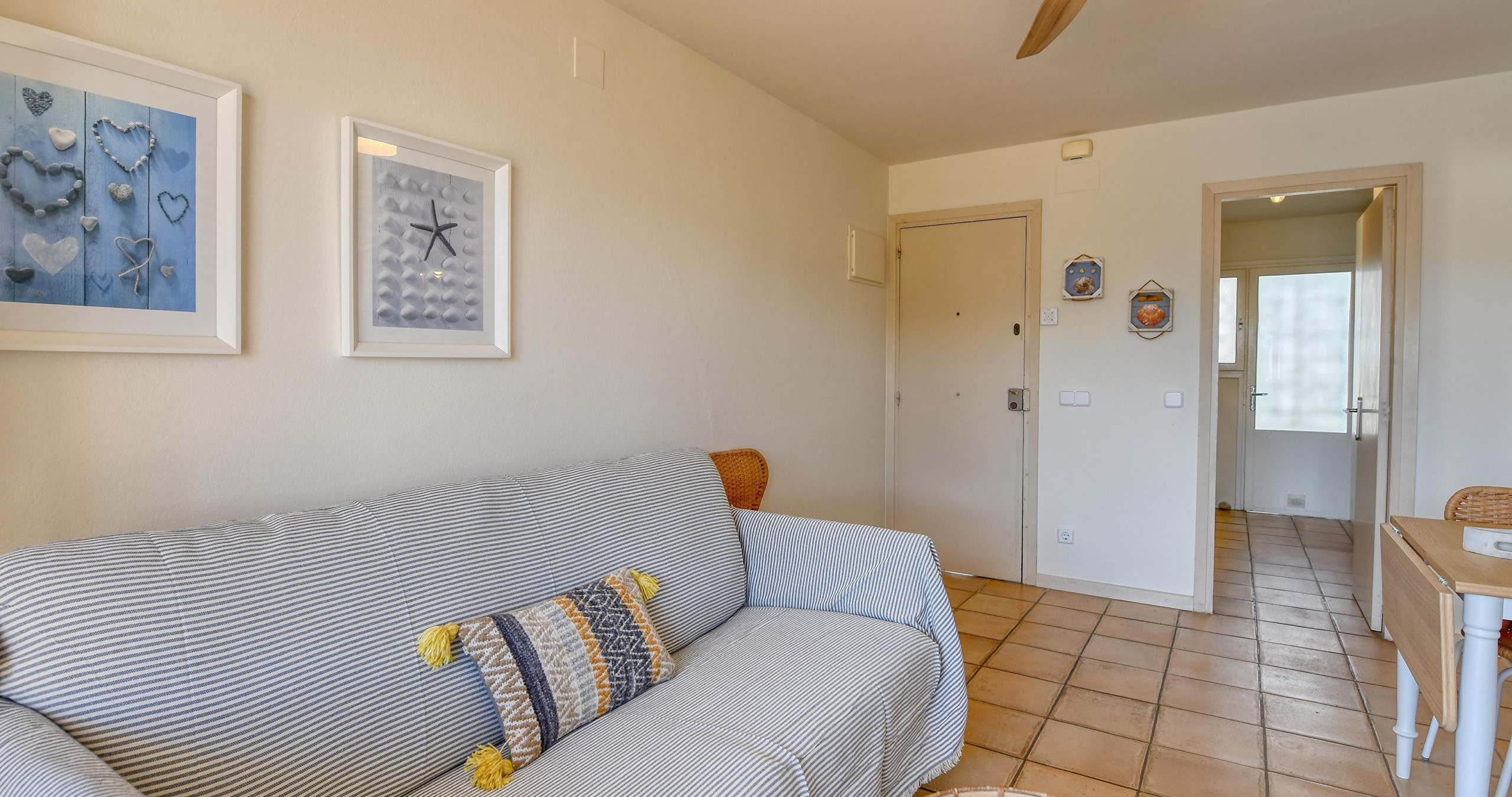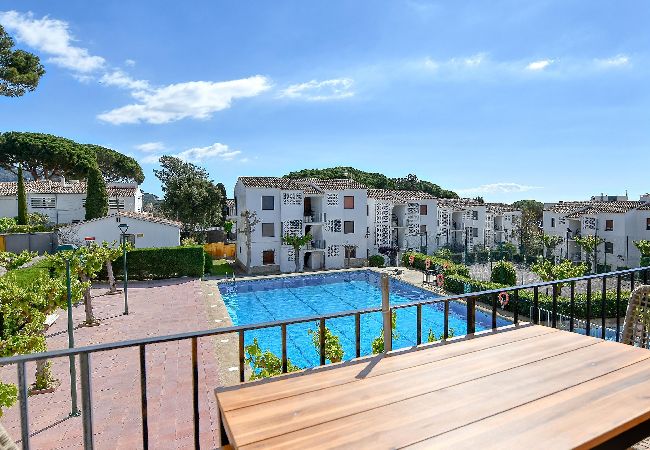 Apartament en Calella de Palafrugell posseeix 2 dormitori(s) i capacitat per a 4 persones. Allotjament de 55 m², amb vistes al jadí i a la piscina. Es troba a 150 m del supermercat, 6 km e l'estació de autobusos, 13 km del hospital, 14 km del camp de golf, 21 km del parc aquàtic, 50 km de l'aeroport, 50 km de l'estació de trens, 150 km de l'aeroport. Disposa de rentadora, planxa, accés internet (wifi), piscina comunitària, 1 Televisor. La cuina independent, de vitroceràmica, està equipada amb nevera, microones, forn, congelador, vaixella/coberteria, estris/cuina i cafetera.