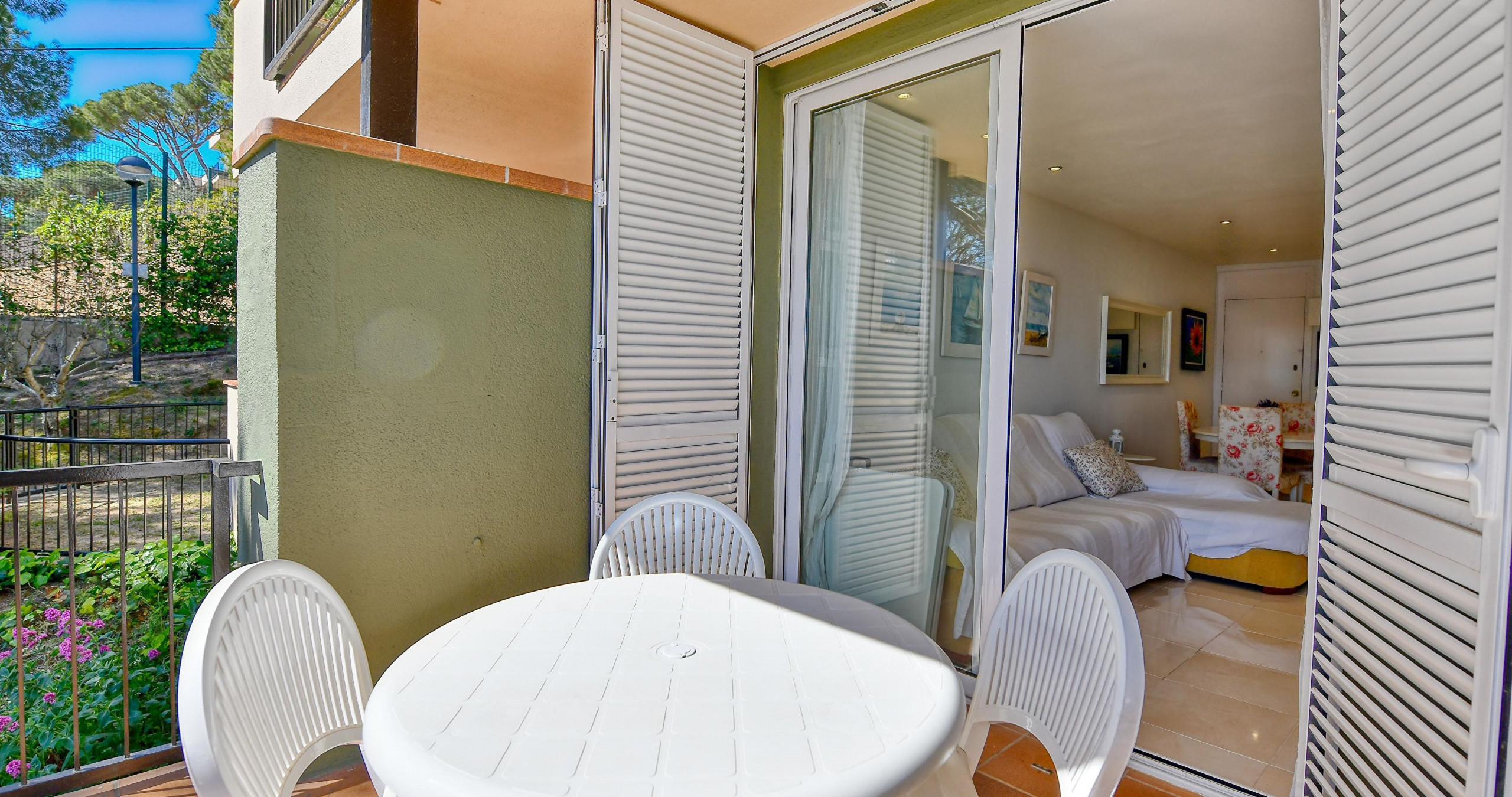 Apartament en Calella de Palafrugell posseeix capacitat per a 6 persones. Allotjament de 80 m², amb vistes al mar. Es troba a 12 m del camp de golf "12m", 55 m de l'aeroport "55m", 400 m del supermercat "400m", 1 km de la platja de sorra "1000m", 1 km de la platja de roca "1000m". Disposa de pista de tennis, calefacció bomba de calor, aire condicionat, piscina comunitària, parking a l´aire lliure en edifici proper, 1 Televisor. La cuina independent, eléctrica, està equipada amb nevera, forn, vaixella/coberteria i estris/cuina.