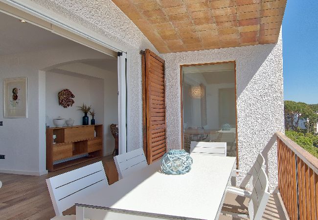 Apartament en Calella de Palafrugell posseeix 3 dormitori(s) i capacitat per a 6 persones. Allotjament de 100 m², amb vistes al mar i al jadí. Es troba a 0 m del parc d'atraccions, 250 m de la platja de sorra "250m", 250 m de la platja de roca "250m", 250 m del supermercat "250m", 6 km e l'estació de autobusos "6km", 12 km del camp de golf "12km", 12 km del hospital "12km", 20 km del parc aquàtic "20km", 55 km de l'aeroport "55km", 140 km de l'aeroport "140km".Disposa de terrassa, planxa, accés internet (wifi), zona infantil, calefacció central, aire acondicionat sols al saló, piscina comunitària, parking a l´aire lliure en edifici proper, 1 Televisor.La cuina independent, eléctrica, està equipada amb nevera, forn, vaixella/coberteria, estris/cuina, cafetera i torradora.