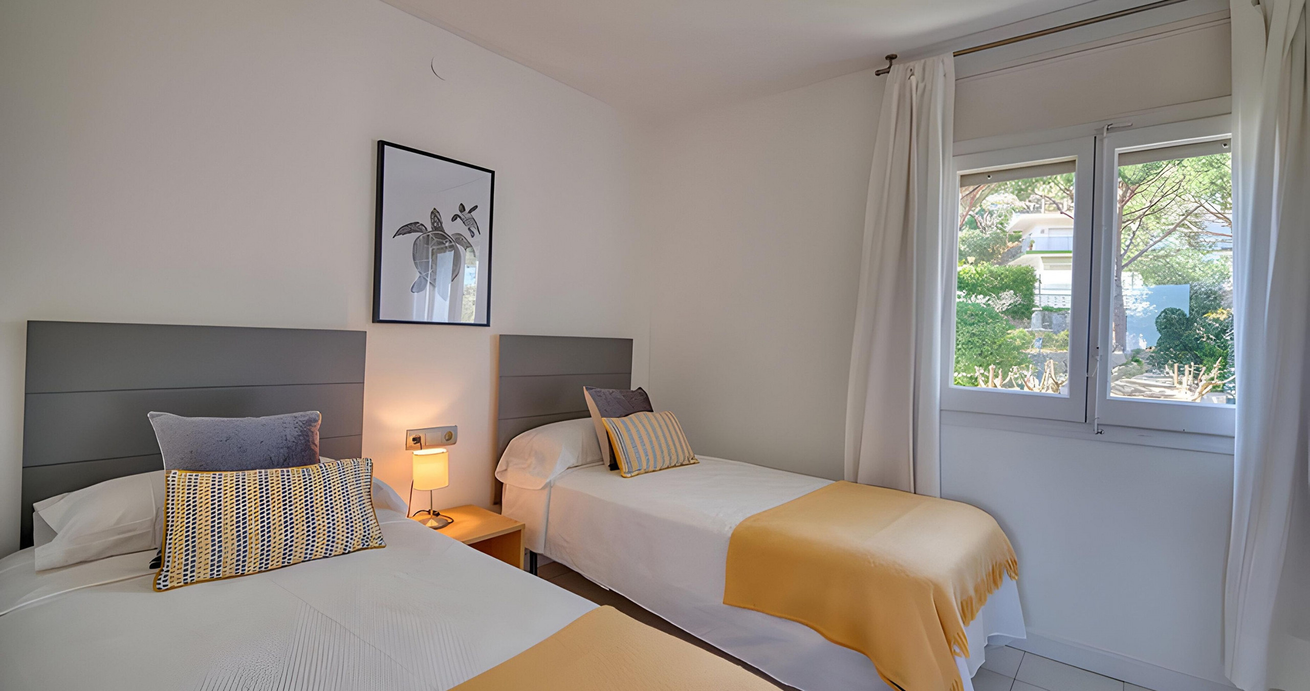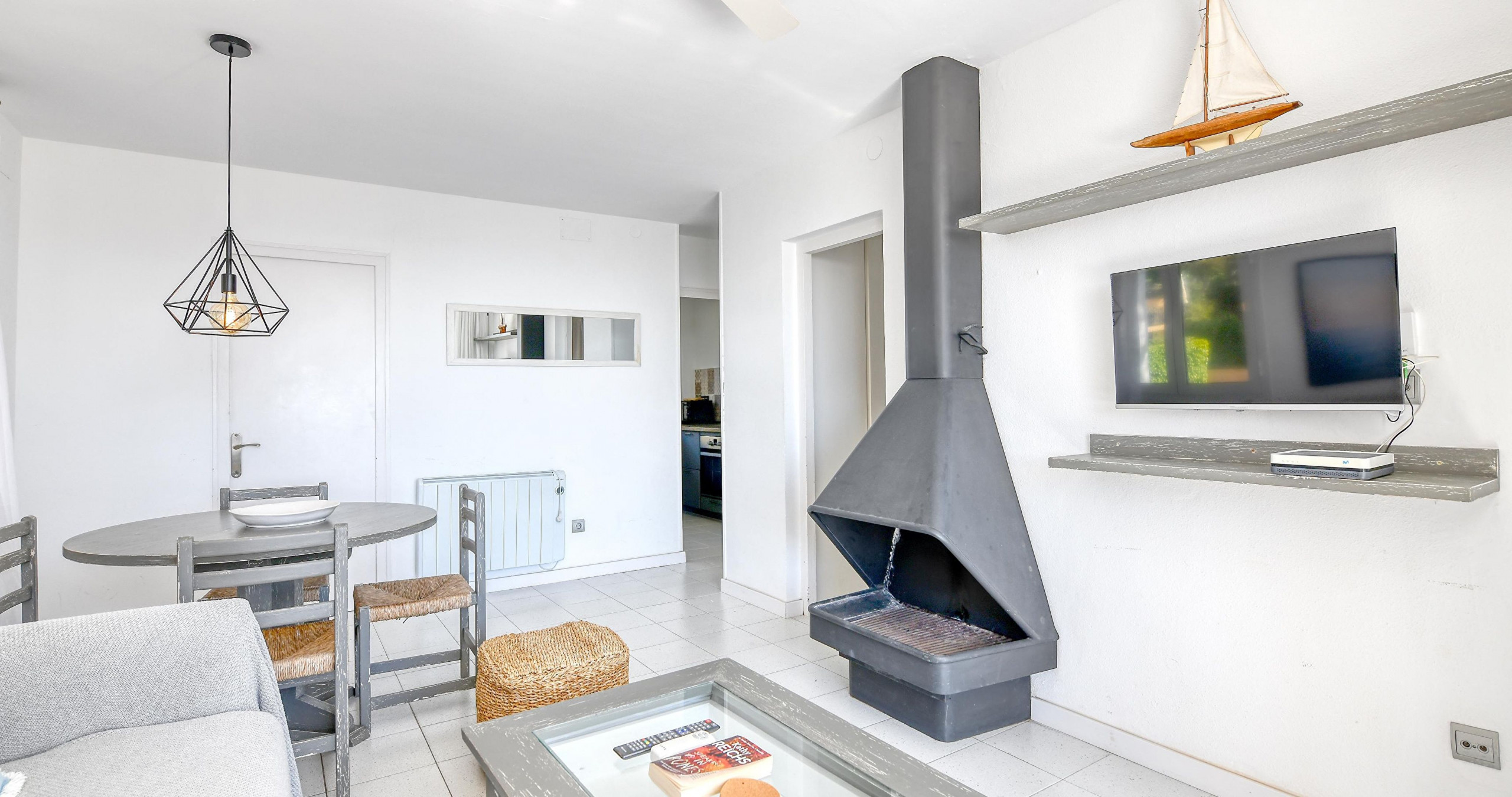 Apartament en Calella de Palafrugell posseeix capacitat per a 6 persones. Allotjament de 60 m², amb vistes al mar. Es troba a 12 m del camp de golf "12m", 50 m de l'aeroport "50m", 300 m del supermercat "300m".Disposa de llar de foc, planxa, accés internet (wifi), caldera individual de gas, parking a l´aire lliure en edifici proper, 1 Televisor.La cuina independent, eléctrica, està equipada amb nevera, forn, vaixella/coberteria, estris/cuina, cafetera i torradora.