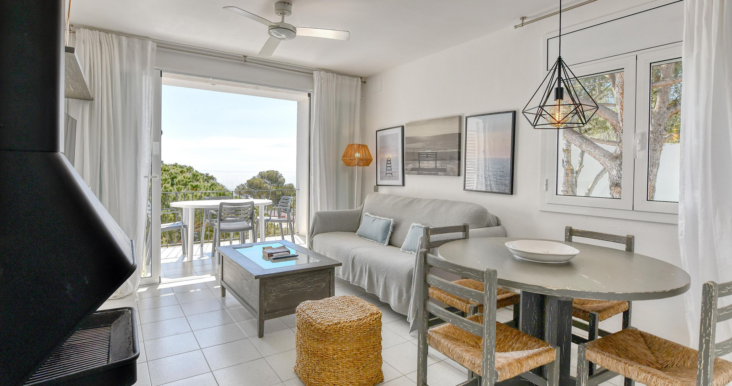 Apartament en Calella de Palafrugell posseeix capacitat per a 6 persones. Allotjament de 60 m², amb vistes al mar. Es troba a 12 m del camp de golf "12m", 50 m de l'aeroport "50m", 300 m del supermercat "300m". Disposa de llar de foc, planxa, accés internet (wifi), caldera individual de gas, parking a l´aire lliure en edifici proper, 1 Televisor. La cuina independent, eléctrica, està equipada amb nevera, forn, vaixella/coberteria, estris/cuina, cafetera i torradora.