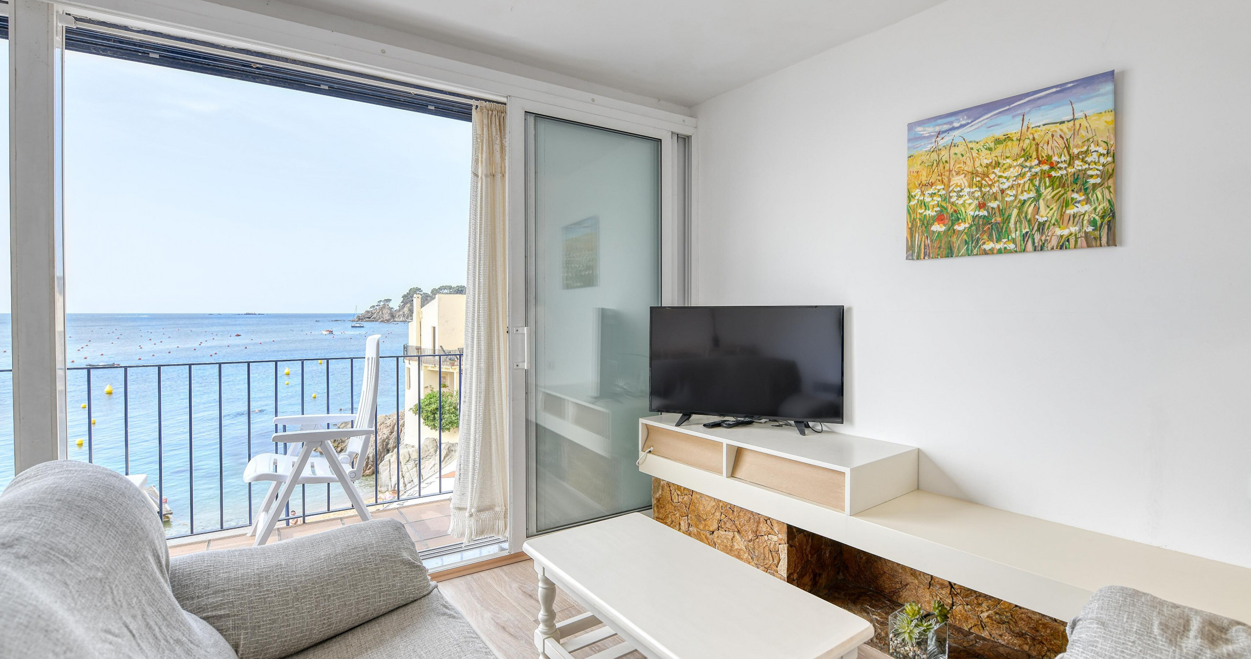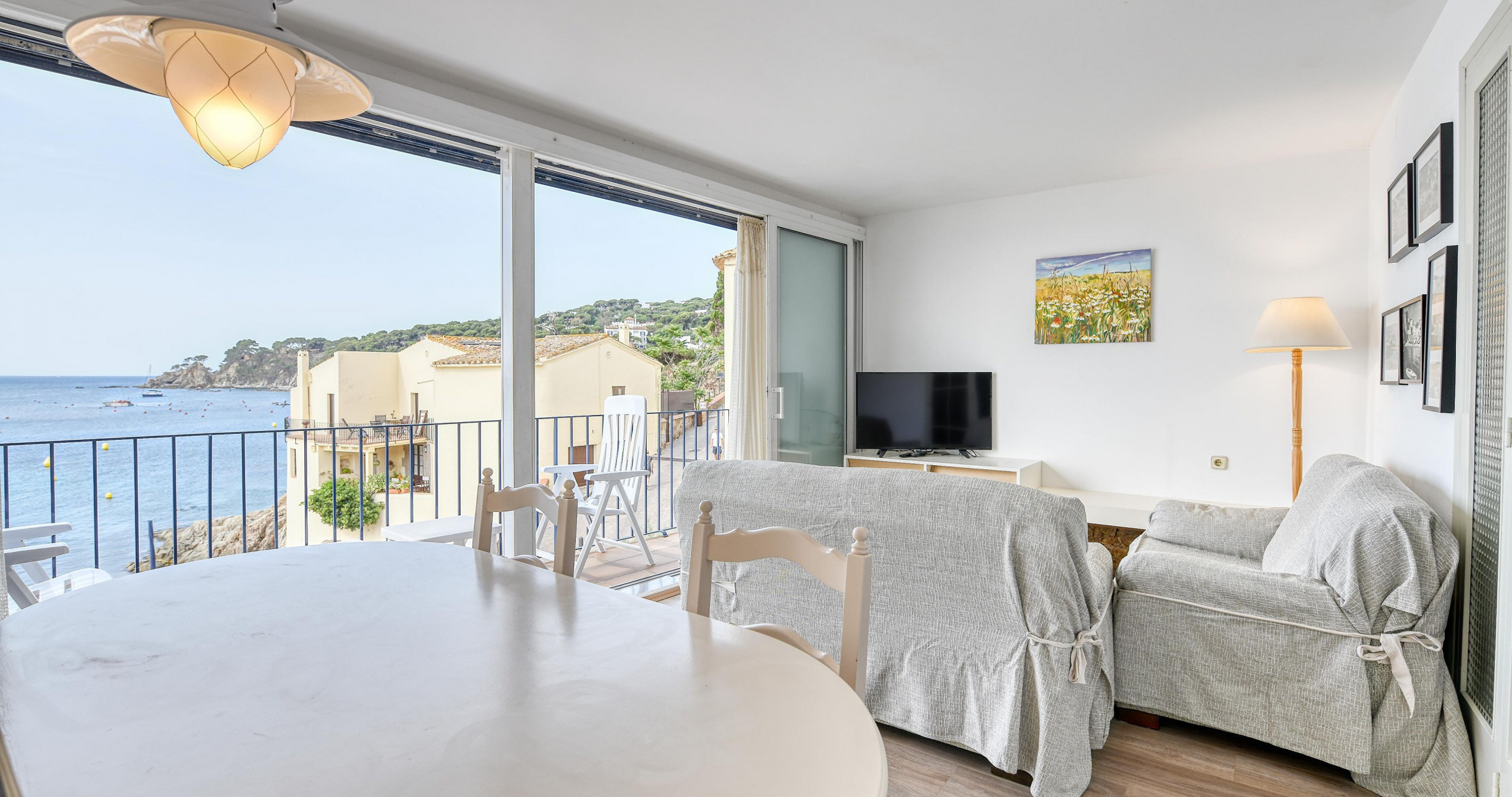 Apartament en Calella de Palafrugell posseeix capacitat per a 6 persones. Allotjament, situat a primera línia de platja, amb vistes al mar. Disposa de accés internet (wifi), 1 Televisor. La cuina independent, eléctrica, està equipada amb nevera, forn, vaixella/coberteria i estris/cuina.