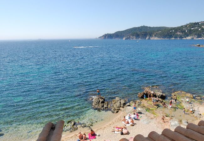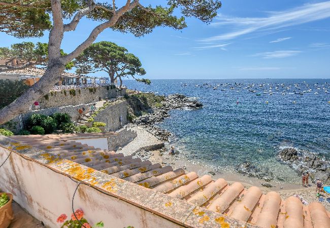 Casa en Calella de Palafrugell posseeix capacitat per a 8 persones. Allotjament de 150 m², situat a primera línia de platja, amb vistes al mar. Es troba a 10 m de la platja de sorra "10m", 10 m de la platja de roca "10m", 12 m del camp de golf "12m", 55 m de l'aeroport "55m", 150 m del supermercat "150m". Disposa de llar de foc, planxa, accés internet (wifi), 1 Televisor. La cuina independent, eléctrica, està equipada amb nevera, forn, vaixella/coberteria, estris/cuina i cafetera.