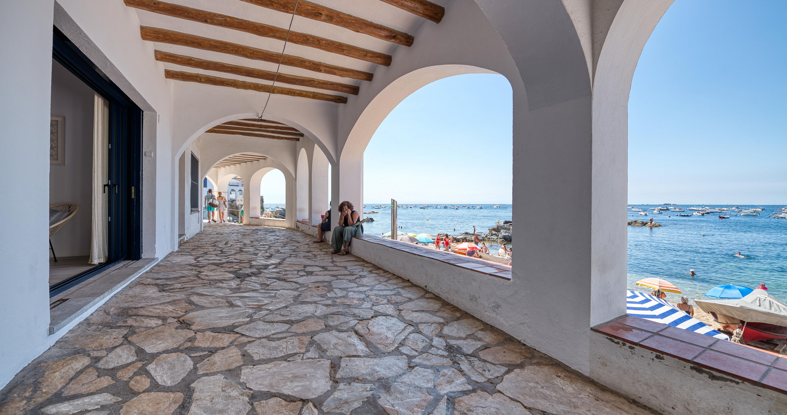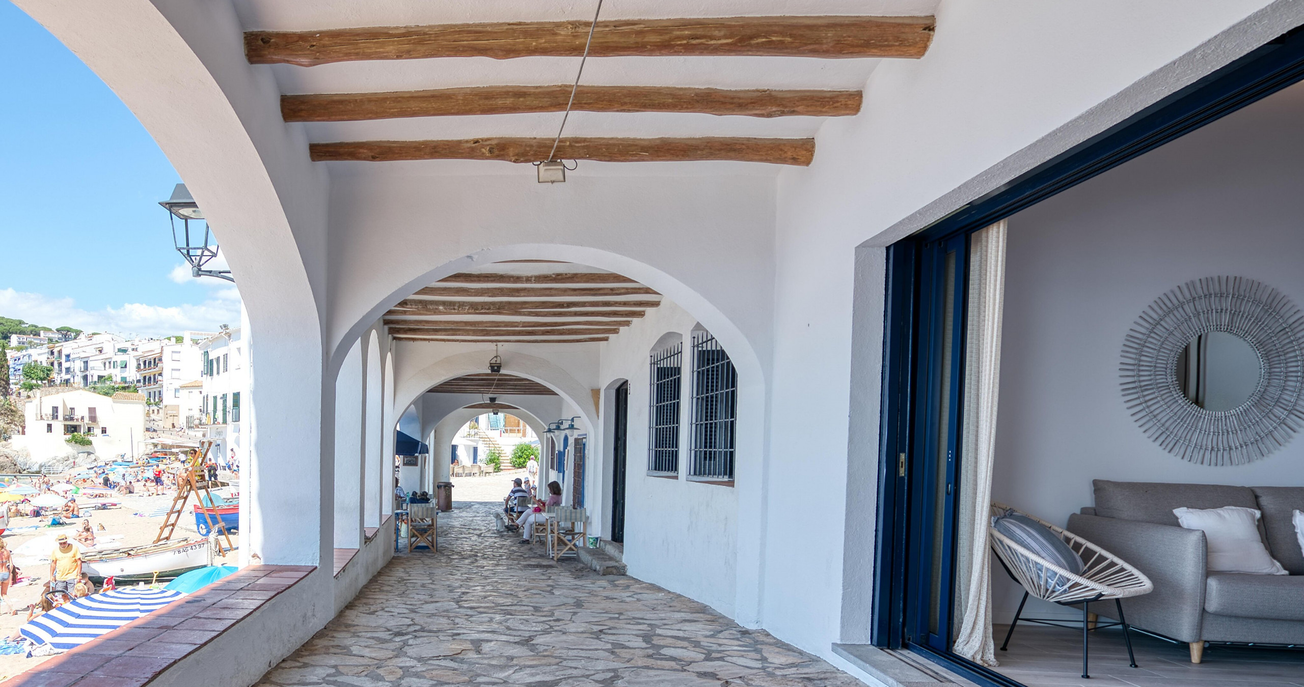 Estudi en Calella de Palafrugell posseeix capacitat per a 2 persones. Allotjament de 60 m², situat a primera línia de platja, amb vistes al mar. Es troba a 10 m de la platja de sorra "10m", 10 m de la platja de roca "10m", 18 m del camp de golf "18m", 48 m de l'aeroport "48m", 150 m del supermercat "150m". Disposa de planxa, accés internet (wifi), calefacció bomba de calor, aire condicionat, parking cobert en edifici proper, 1 Televisor. La cuina independent, eléctrica, està equipada amb nevera, microones, forn, vaixella/coberteria, estris/cuina i cafetera.